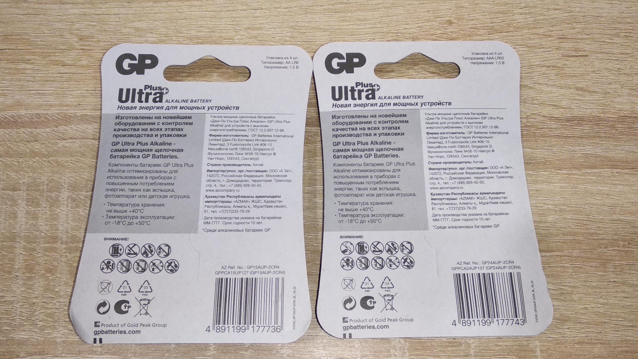 От увиденных ранее GP'шек отличаются цветом полосы на одном из торцов, он синий, чаще попадаются с зеленым, это из серии GP Super. Надписи ничего нового не сообщают, привычная маркировка LR6 (для AA размера), номинальное напряжение 1,5 В (у аккумуляторных, напомню, 1.2 В), есть пометка об отсутствии кадмия и ртути.