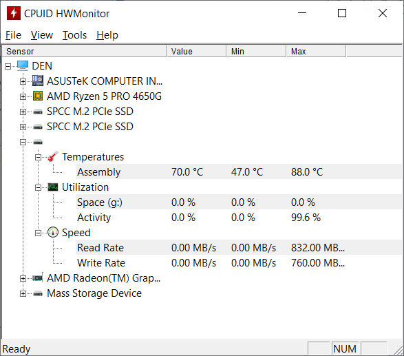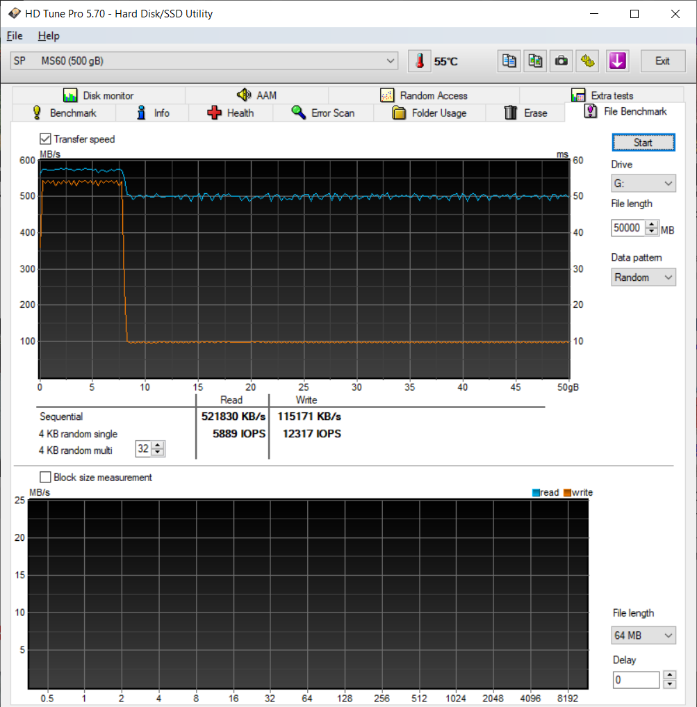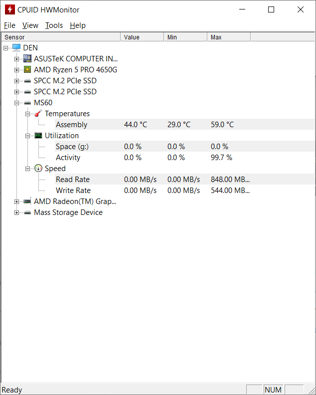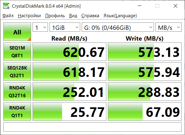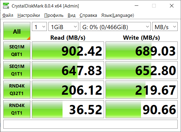 Тестировать буду на компьютере с AMD Ryzen 5 Pro 4650G и материнской платой Asus ROG Strix B550-I Gaming, который легко утилизирует любую скорость накопителей. Скриншоты будут предоставлены также: первый для MS70, затем уже для M60.