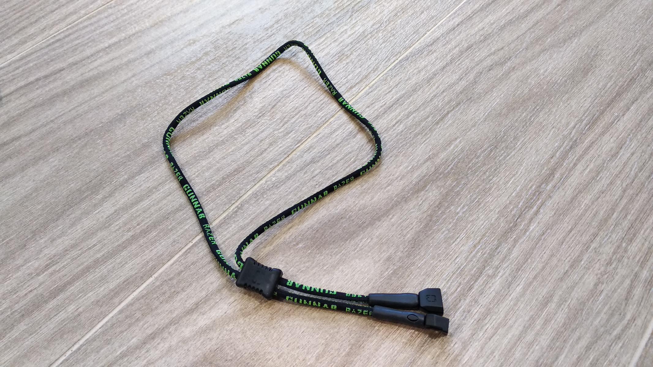 Кроме конечно же очков, в набор поставки входит мешочек для хранения очков, шейный шнурок, салфетка для чистки, а также инструкция, как сменить дужки на шнурок. Везде присутствует символика GUNNAR и Razer.