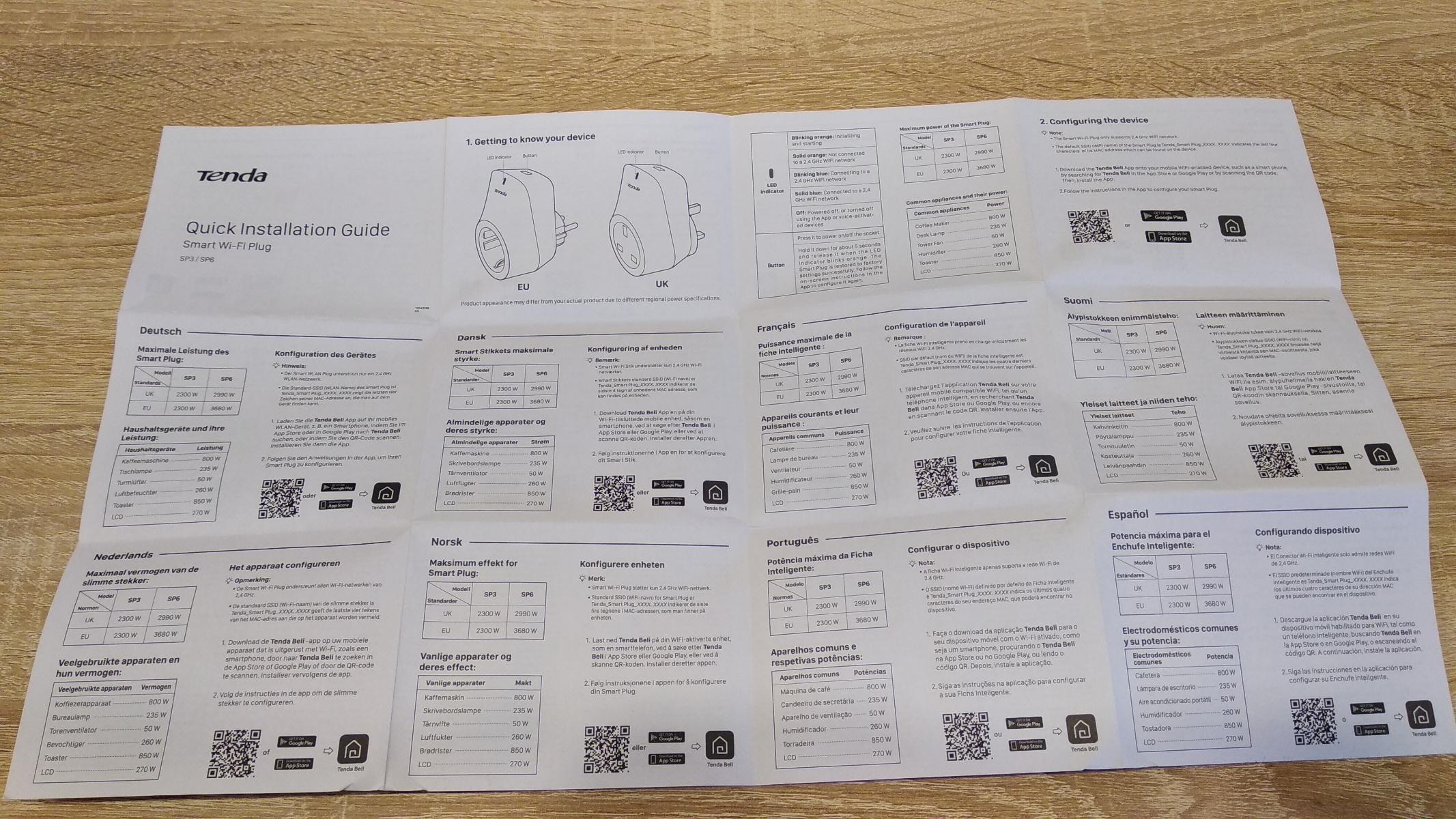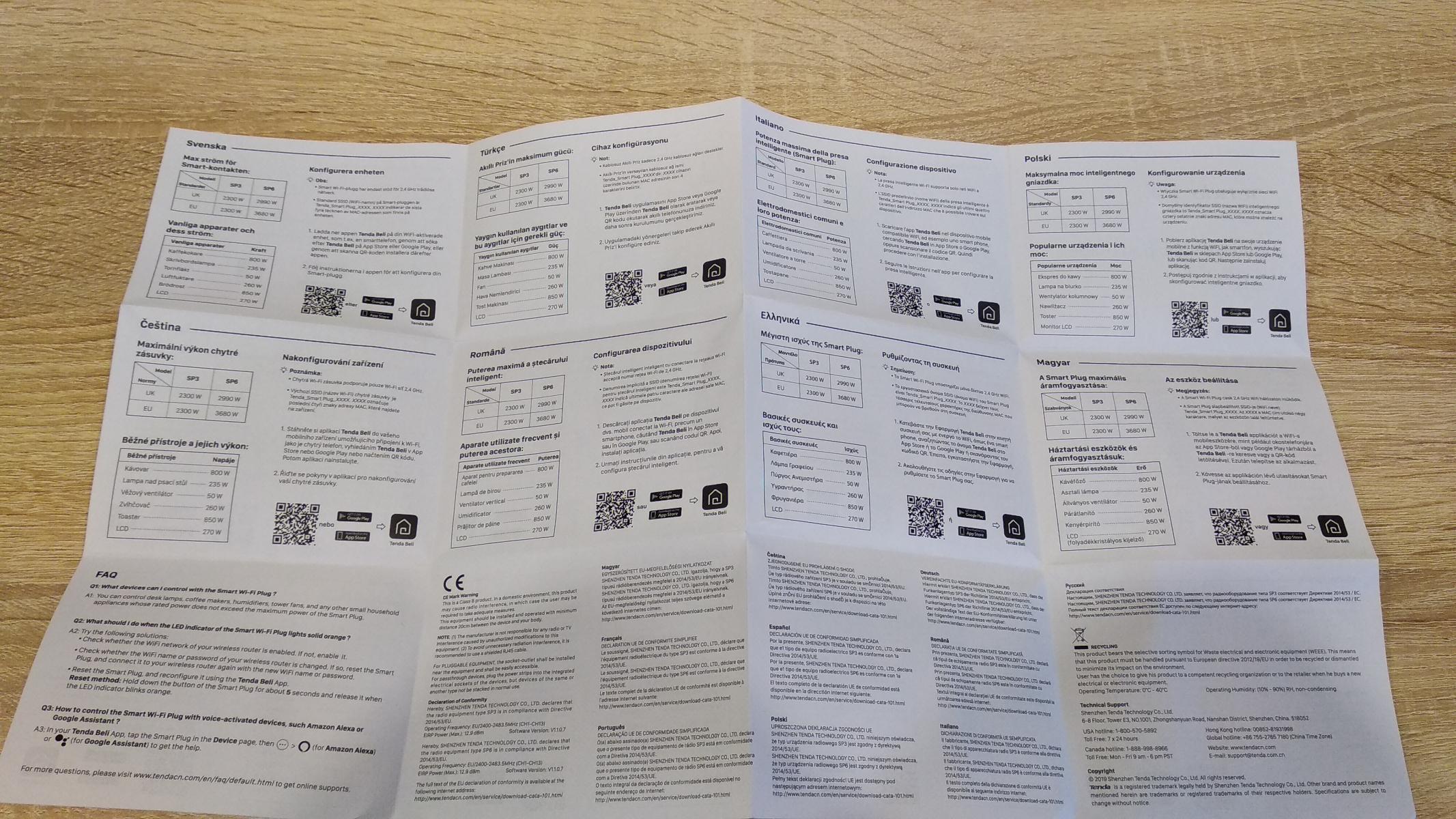 На ней есть цветное изображение устройств, очень краткие характеристики. Что это за устройство написано на 12 языках. Впрочем, самое главное указано, это управление по Wi-Fi и максимальная нагрузка в 10А. Кроме того, указаны голосовые ассистенты, с которыми работает устройство. Внутри Tenda SP3 находятся в пластиковом ложементе и никуда не денутся при транспортировке.