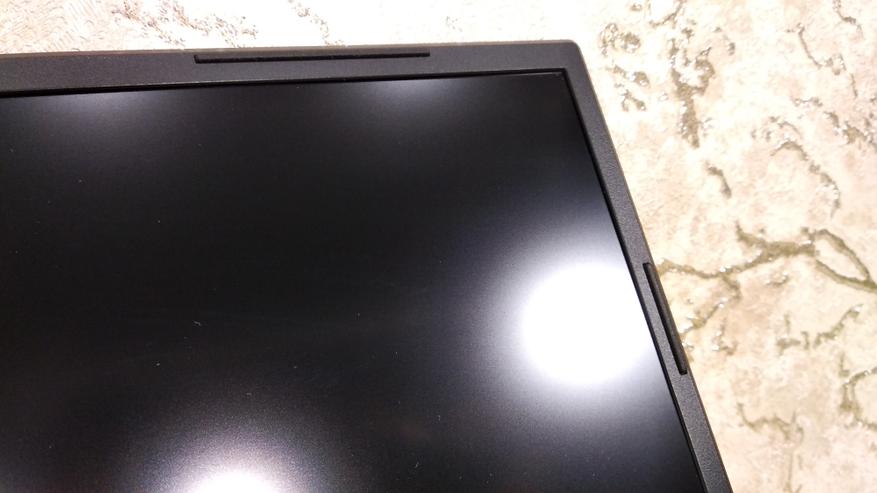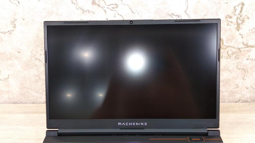 Диагональ IPS дисплея, самая распространенная — 15.6". Частота обновления экрана 144 Гц, при разрешении FullHD, время отклика 5 мс. Рамки: по бокам 7.4 мм, сверху 9.8 мм, снизу 20.4 мм. Поверхность экрана матовая, на мой взгляд, она более предпочтительна, чем глянец. В глянцевом экране видно все, даже в темноте, т.к. свет от экрана подсвечивает объекты пере собой, т.е. пользователя. Над экраном находится камера с разрешением 720P и микрофоны возле нее.