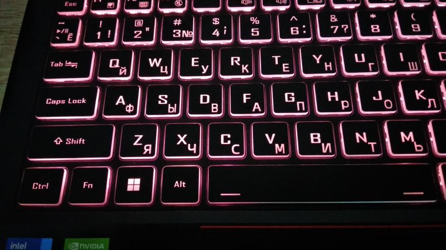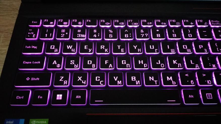 В ноутбуке установлена IPS матрица, как уже говорилось выше. В целом неплохая, но и далеко не самая лучшая. Судя по тестам IXBT, 144 Гц для нее многовато. Цвета не кислотные, яркости хватает для солнечного непрямого света, хотя изначально показалось, что маловато.