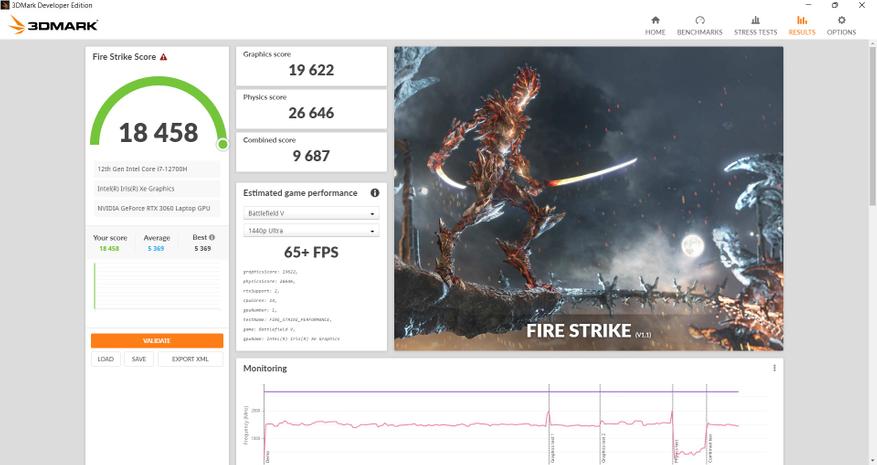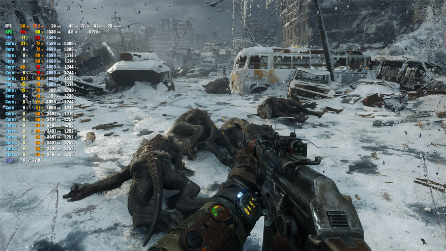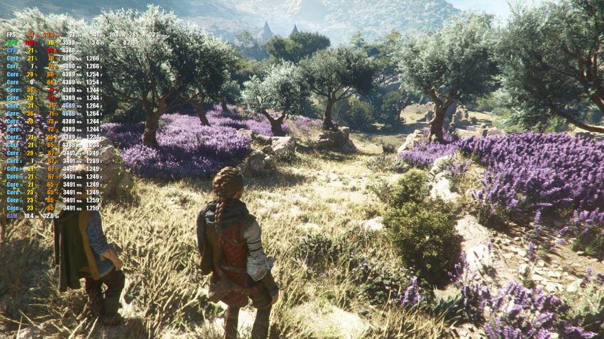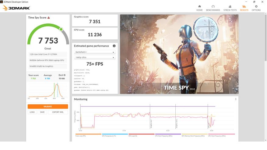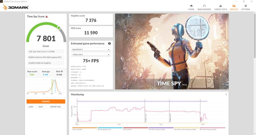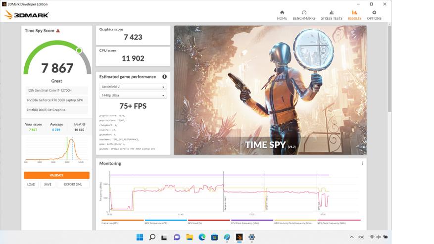 Графика представлена двумя видеоадаптерами. Интегрированное видеоядро Intel IRIS XE Graphics и Nvidia RTX 3060. Производительности последней хватает для большинства ААА игр в FullHD разрешении. Кроме того, можно всегда задействовать DLSS/FSR, добавив FPS, например в Plague Tale. Во всех играх был выставлен максимальный набор настроек. Игровые ноутбуки коварны тем, что иногда видеокарту в них "душат". Проверим, как дела обстоят здесь.