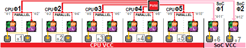Управляет фазами питания чип RAA229004 производства Renesas (которая купила Intersil). Работает он в режиме 5+2: 5 фаз на ядра процессора и 2 фазы на SOC. К сожалению, найти какую-то подробную информацию по RAA229004 найти не удается. При этом он стоит в половине (причем достойной) плат B550. Можем предположить, что это адаптированный под AMD контроллер, так как не удалось найти его в платах под Intel.