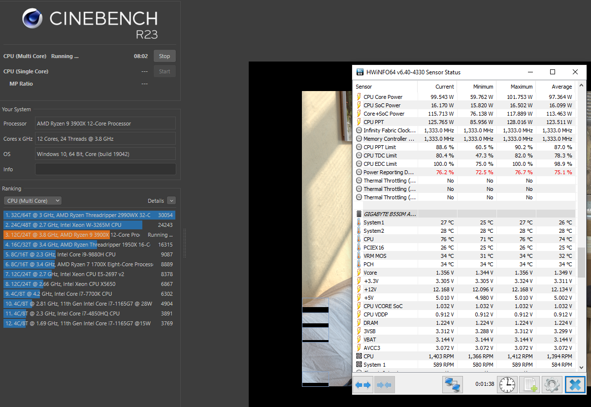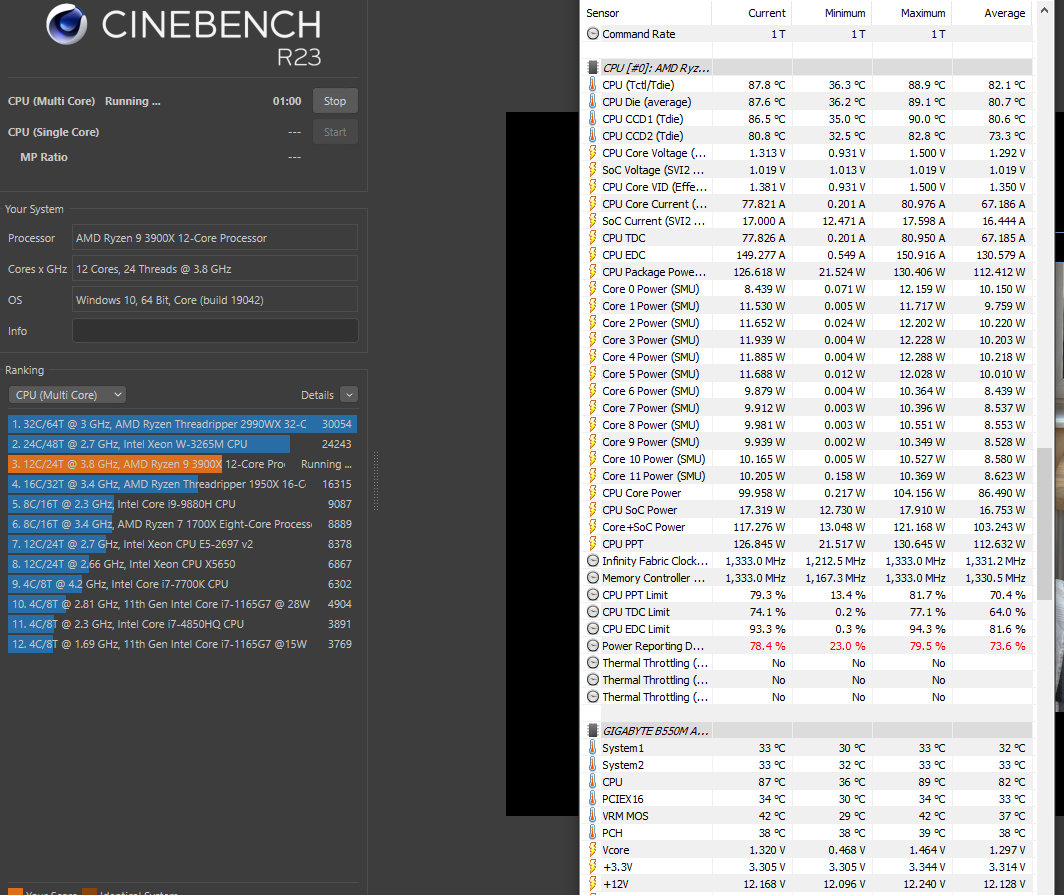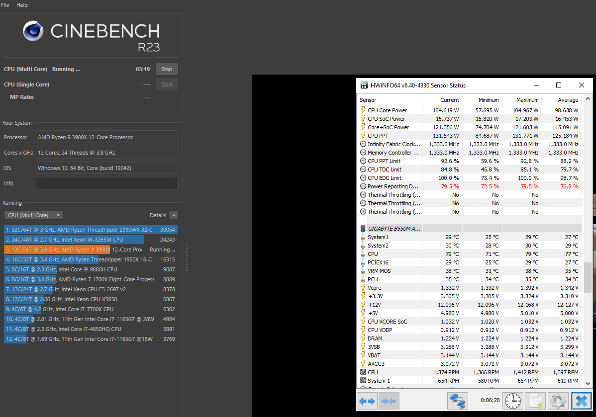 Тестирование было в стоковом режиме и с небольшим увеличением лимитов (PPT=160, TDC=105, EDC=160) - уйти куда-то выше у меня не позволило охлаждение и отсутствие прикладного опыта разгона Zen2.