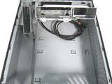 Для удобства монтажа внутренний отсек 3,5" и сдвоенный отсек 5,25"\2,5" сделаны съемными. В нормальном положении они зафиксированы при помощи пары винтов. Если их снять, то отсеки можно поднимать на угол до 90 градусов или вообще вынуть из корпуса.