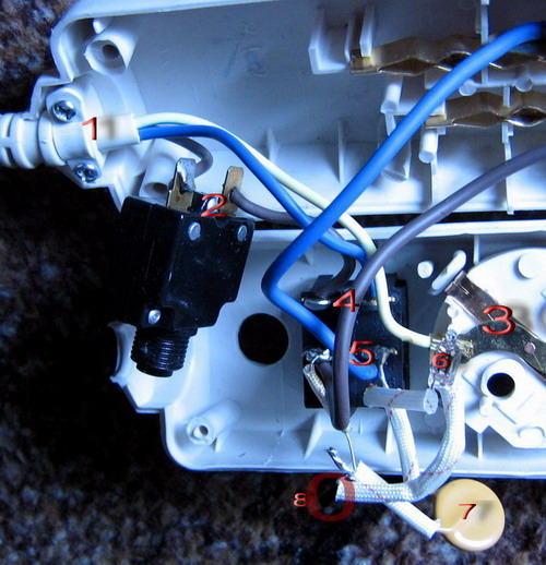 <br/>С выхода выключателя 5 два провода идут к розеткам. Параллельно выходу 5 я подключен сетевой фильтр.
