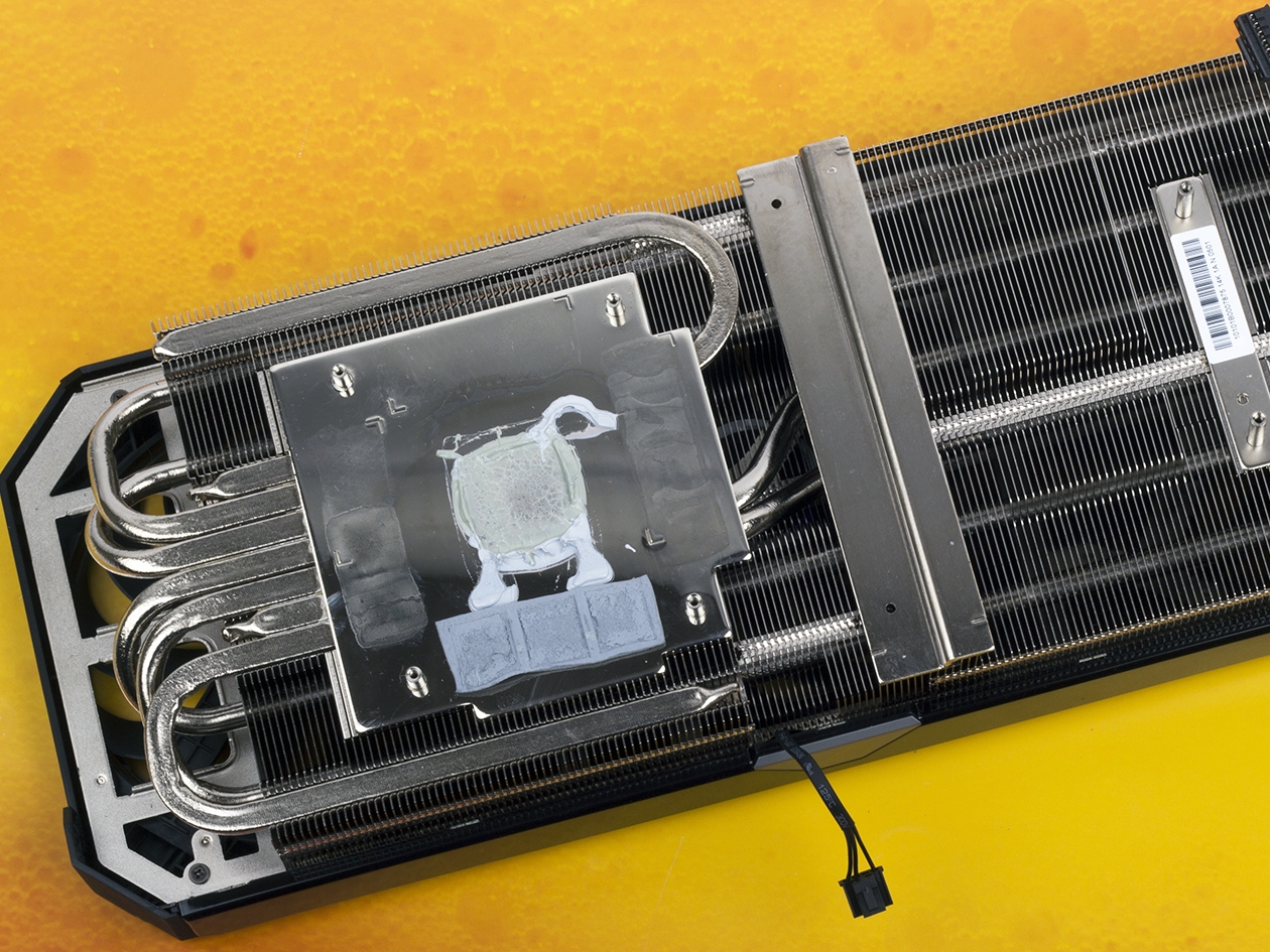 Проблема заключается в том, что данная пластина никак не контактирует с основным радиатором и её потенциала не хватает для отвода тепла от 8 банок горячих чипов GDDR6X.