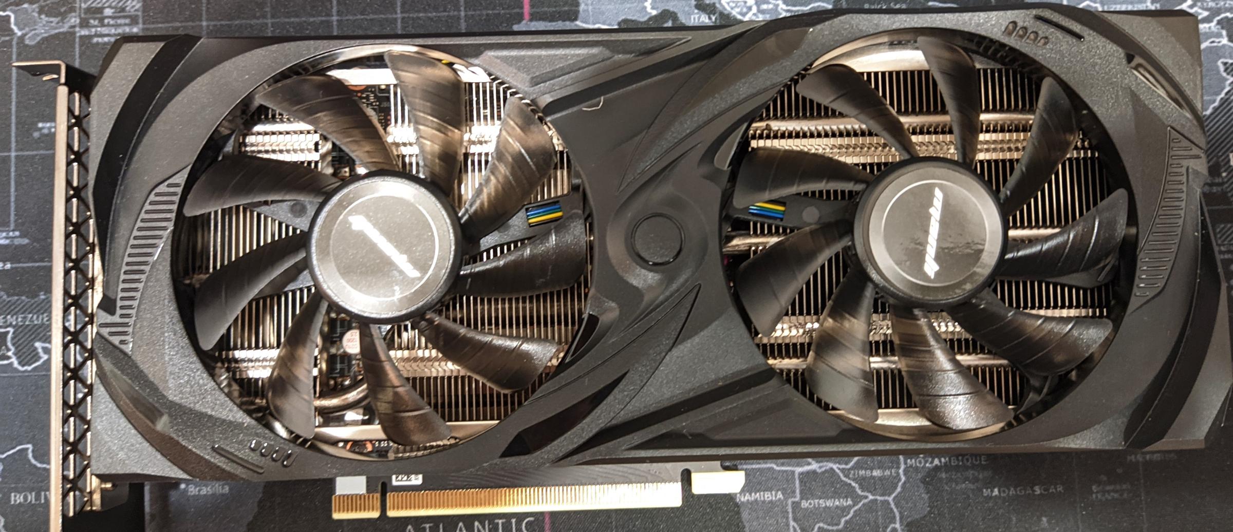 Система охлаждения Manli RTX 3060 занимает два слота в материнской плате, впрочем от видеокарты такого уровня ожидать чего-то большего смысла нет.