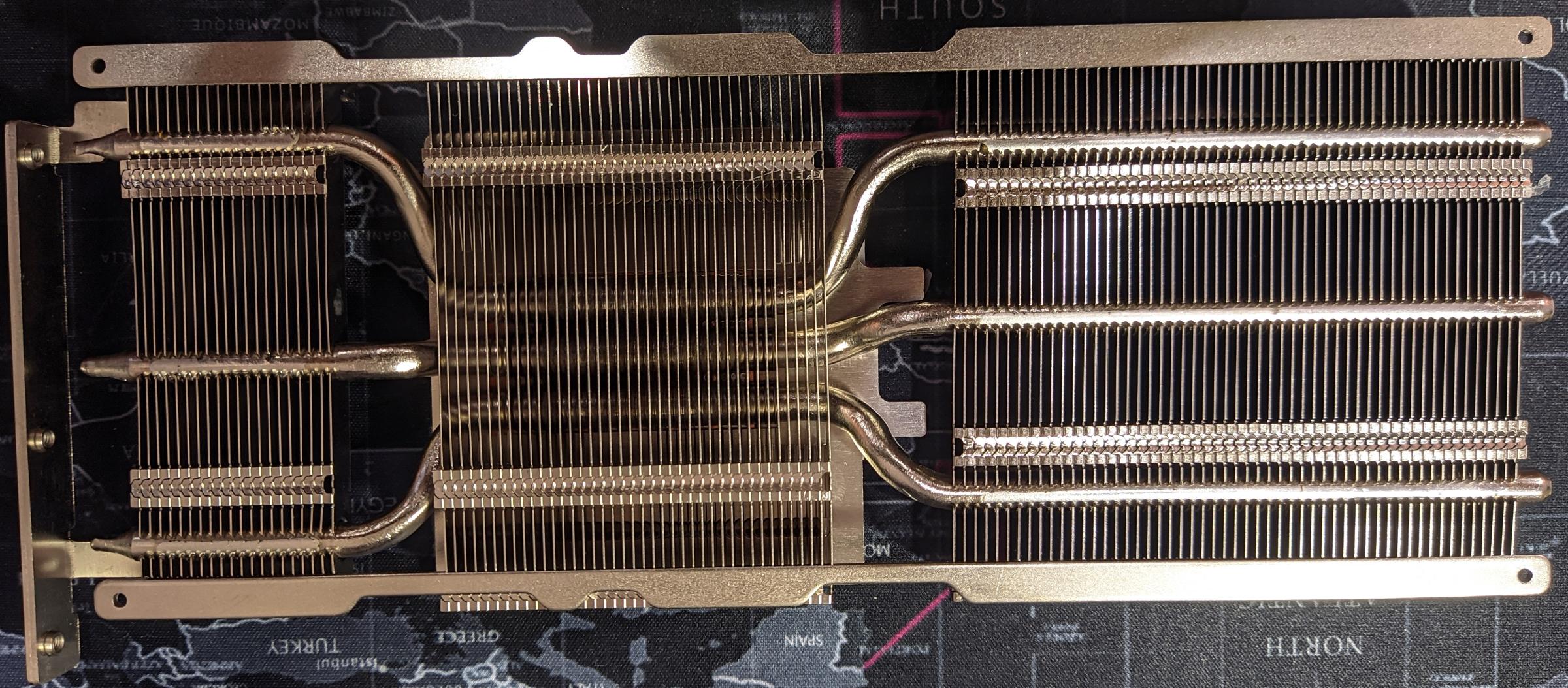В длину радиатор составляет 242 мм, в ширину - 100 мм, толщина равна 15 мм. В центре радиатора видеокарты имеется никелированное основание, в которое впрессована медная пластина, непосредственно контактирующая с GPU видеокарты.