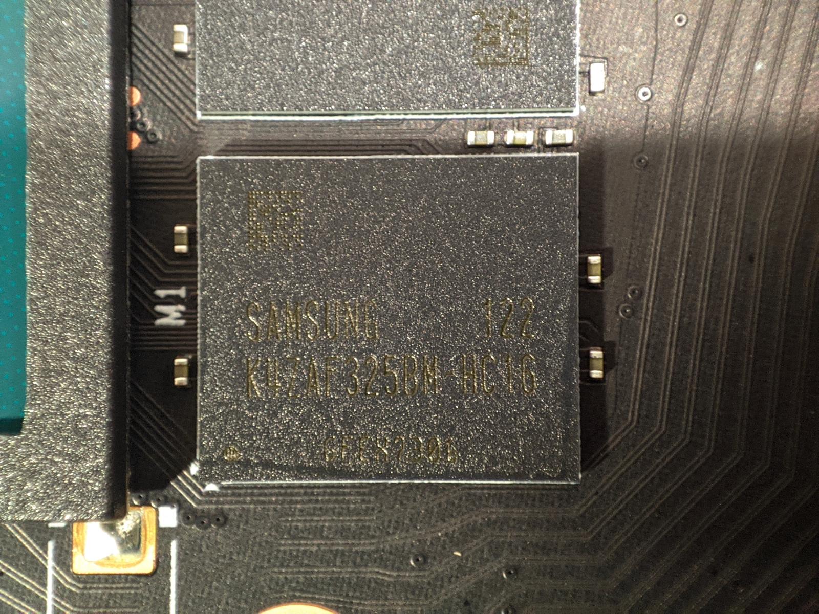 Здесь используются чипы GDDR6 от компании Samsung с маркировкой K4ZAF325BM-HC16 в количестве 6 штук. Ознакомиться с их спецификацией можно по ссылке. За её работу отвечает контроллер uS5650Q.