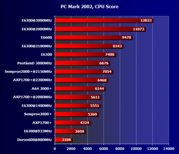 Сравнение процессора Intel Сore2Duo E6300 работающего на различных частотах с популярными процессорами разных лет этого тысячелетия.