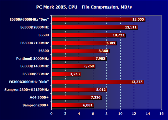 PCMark2005. Набор процессорных тестов. Сжатие файлов.