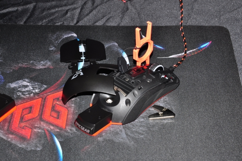Для начала, мышку можно практически полностью отремонтировать в случае поломки. Поддерживается замена основных кнопок, что исключает внезапный уход с дистанции по причине внезапного выхода из строя манипулятора. Во-вторых, поддерживается замена оптического сенсора! Т.е. можно физически сменить «оптику» в мышке. Мне кажется, в будущем это тоже будет использоваться как вероятный «апгрейд» для улучшения характеристик манипулятора. Кстати, оптическое разрешение сенсора аж 6400 точек на дюйм (dpi), что довольно редко встречается при использовании ИК-датчика. Определённо это новый поворот, т.к. в последнее время лазерные сенсоры вытеснили ИК, но, как оказалось – не все производители считают это верным решением. Ну и как не упомянуть подставку для кабеля, напоминающую атакующего скорпиона?