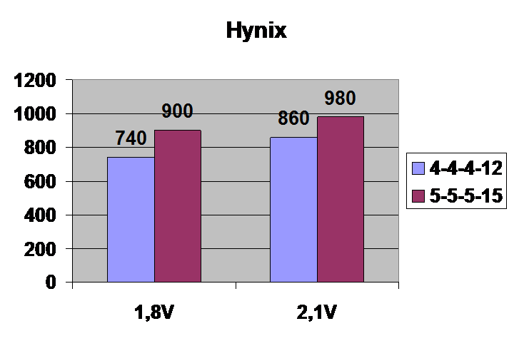 Как я думаю какие либо комментарии к графикам не нужны. Модули Hynix порадовали, решено было оставить их у себя. При цене в 750р за планку, они являются неплохим выбором для разгона, имхо.