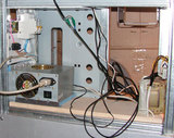 Над ним два автомата. Надо четыре. На каждый компрессор и один на железо. Сейчас на дальний подключена процессорная фреонка. На ближний все остальное. На панели у меня стоит термометр из Хардкано. Он меня капитально достал своими козьими батарейками. Они быстро садятся. И купить их не просто. Не знаю с чем это связано, но их постоянно нет в продаже. Покупать их в прок нельзя. Они разряжаются. Пробовал хранить даже в холодильнике. Без толку. В общем, достали. И я решил от них отказаться. Отказался таким вот простым методом.