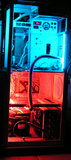 Такой вот получился свет. Маловато будет. Надо добавить. А на следующей картинке видно как будет расположен расширительный бак с помпой. Этот бак стоял еще в самом первом моем корпусе. Но он хорошо подошел. Пришлось только заменить штуцера на уголки с переходами на металлопластик. На них хорошо подойдет силиконовый шланг с внутренним диаметром 8-10мм.