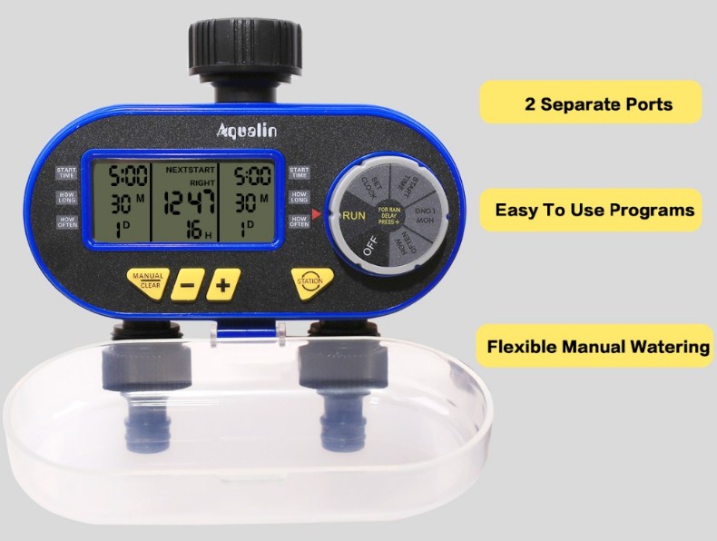 Это таймер подачи воды, который можно установить до 240 минут с интервалом 15, 30 секунд и 1 минута. Он может работать как на отключение, так и на включение, имеет два независимых друг от друга выхода воды, есть множество настроек и регулировок. Корпус защищён от попадания влаги, очень полезный прибор, который пригодится как дачникам, так и для технических нужд, область применения достаточно обширная.