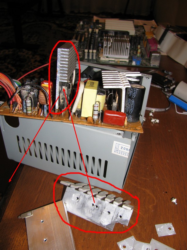 Блок питания имел очень высокие радиаторы, то я заменил их на переделанные с другого блока.