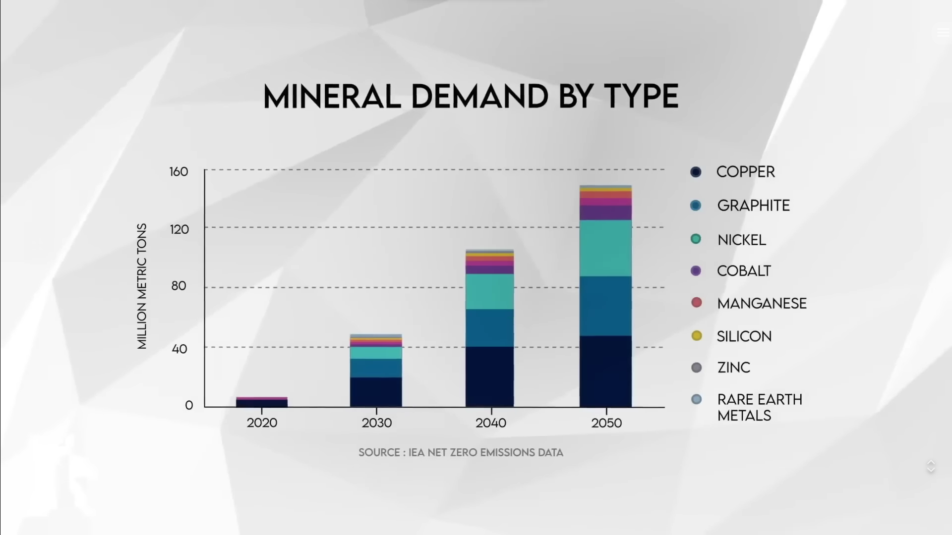 К 2050 году спрос на литий, графит, кобальт, никель, марганец, кремний, хром и редкоземельные элементы возрастет более чем в 100 раз, только чтобы соответствовать росту поставок электромобилей. Это ошеломляющая цифра, которая не учитывает спрос на полезные ископаемые для производства солнечной энергии и энергии ветра.