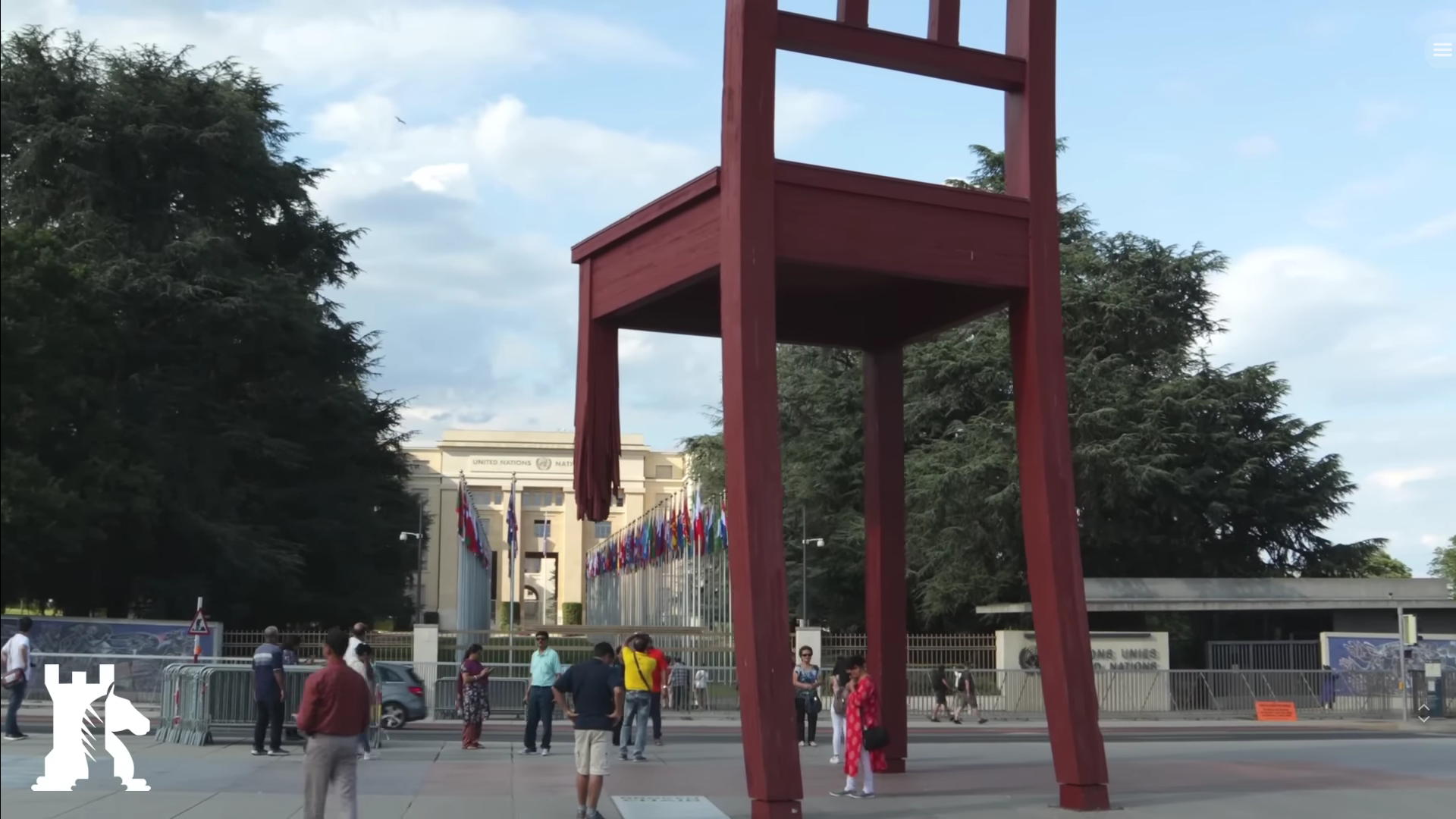 В Женеве расположен монумент, изображающий гигантское сломанное кресло, которое находится прямо напротив ведущего международного органа по вопросам международного права и сотрудничества - Организации Объединенных Наций.