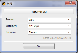AIMP3 Audio Converter использовал следующие настройки: