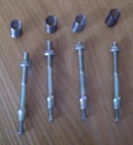 Идем в магазин “Автозапчасти” и ищем там нужные винты с гайками и пружинами. Я нашел 4 винта с интересной конструкцией. Вверху у них резьба и гайка. В средней части винт утолщается и резьба кончается, а с обратной стороны в него вкручивается маленький винтик. Пружины для болтов покупаем все в том же магазине автозапчастей.