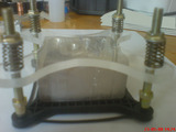 Но нужно еще придумать крепление водоблока. Для 775 сокета, это 4 отверстия вокруг сокета – это облегчает задачу. Необходимы 4 винта с гайками и пружины, чтобы постепенно передавать давление на процессор и чтобы его установить без перекоса.