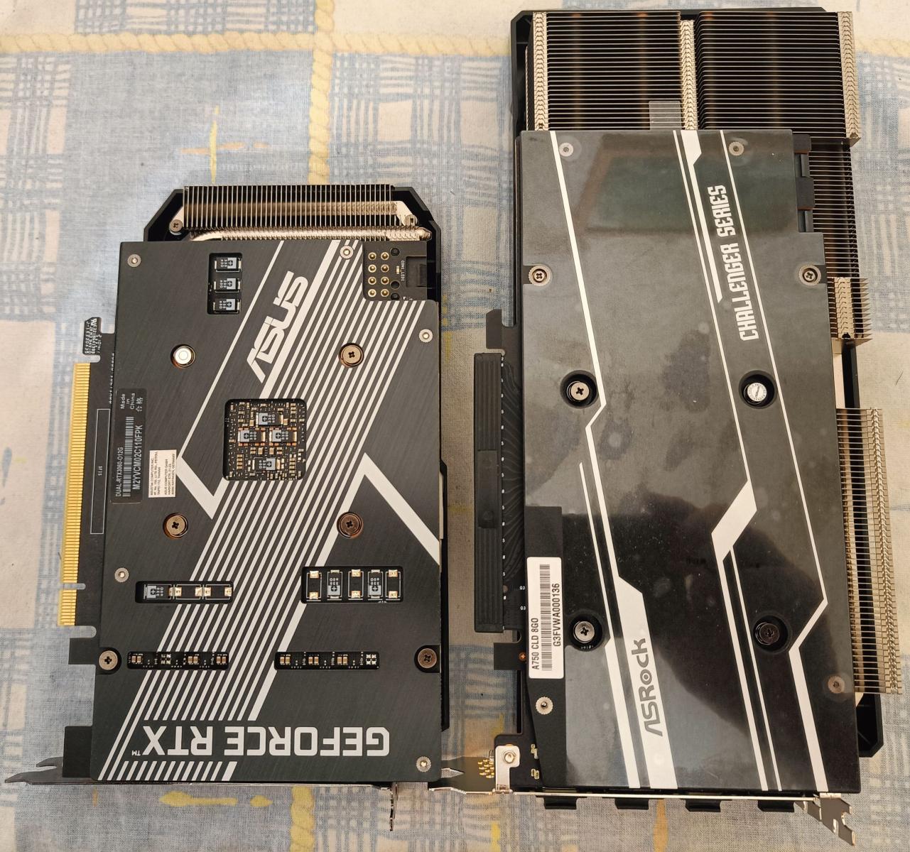 Первые три снимка сделаны чисто для сравнения габаритов АРК А750 и РТХ3060 в двухвентиляторном исполнении.