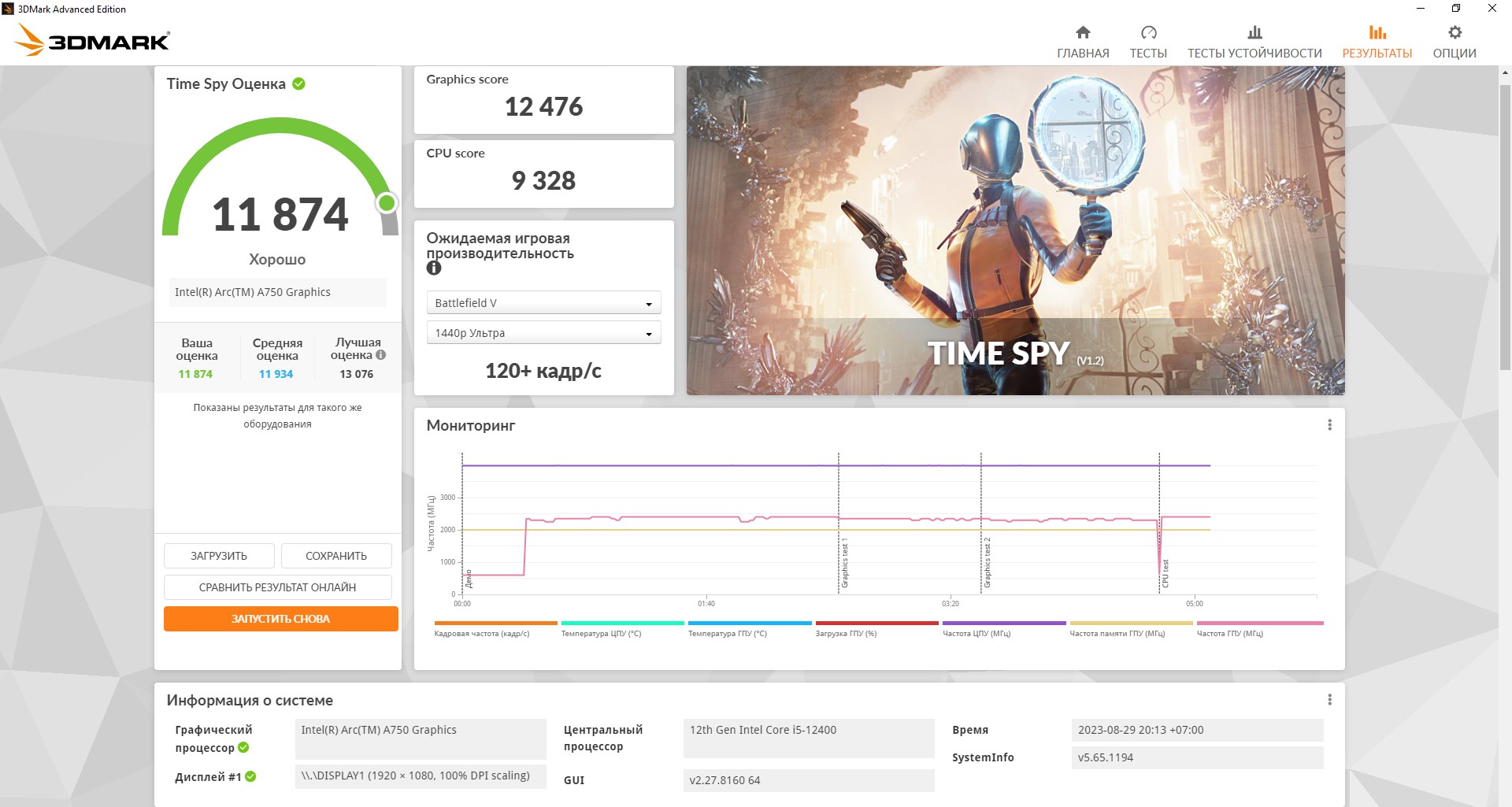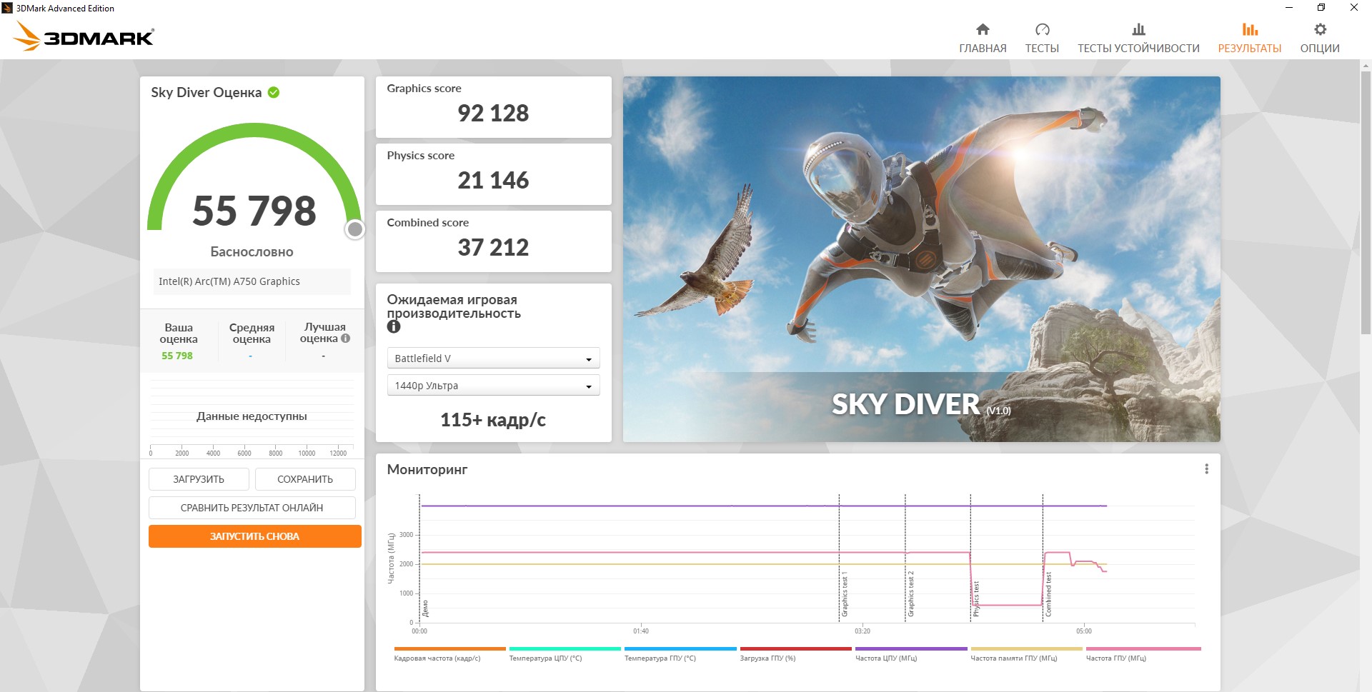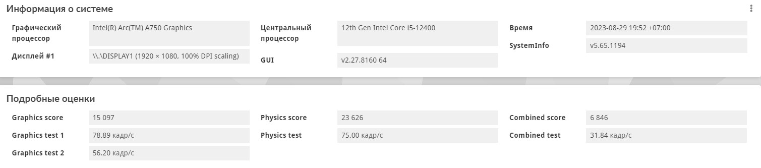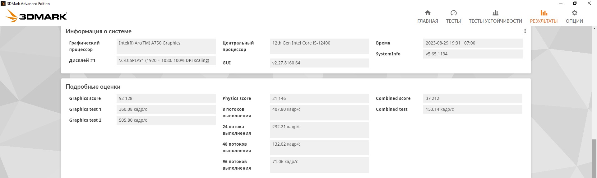 В тестовых приложениях пакета 3D Mark, А750 показала весьма неплохие результаты. И это только при включенном ReBAR!