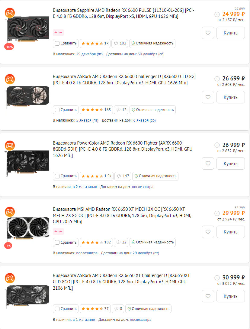 Приобретение младших моделей АМД (RX6600 / RX6650 / RX7600)