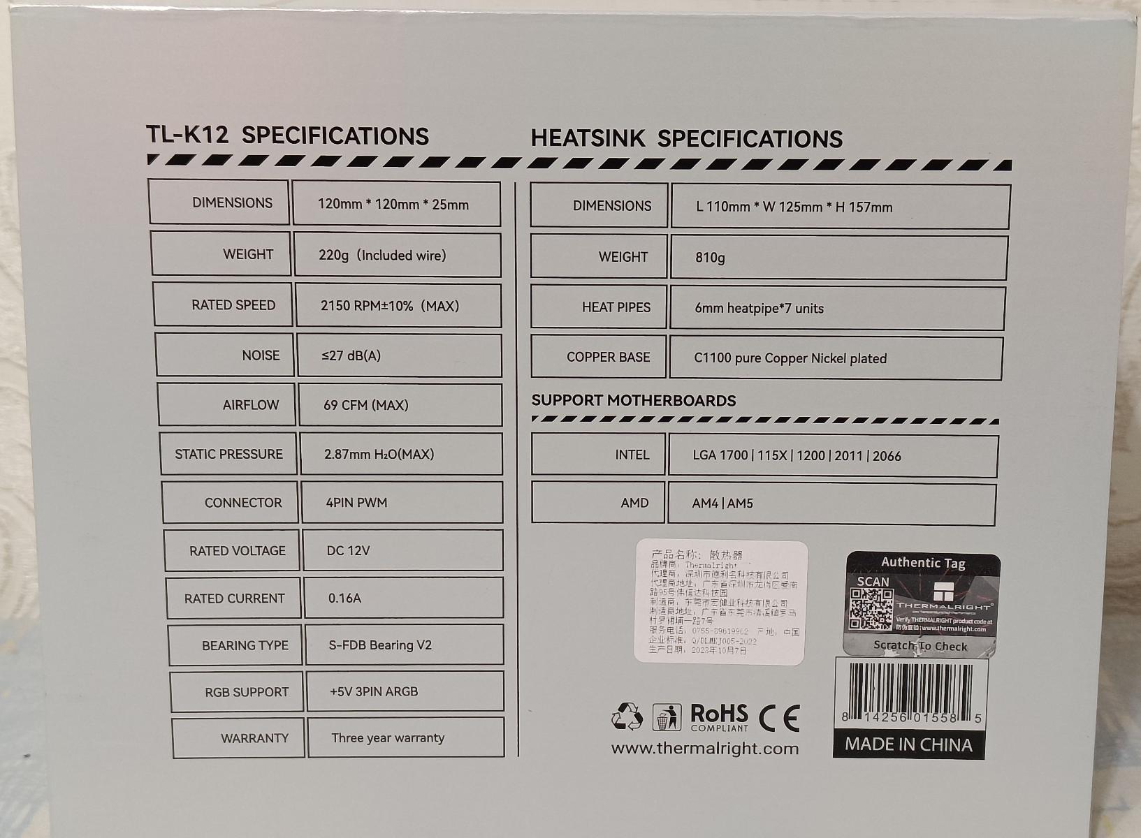 Система охлаждения : Thermalright Peerless Assassin 120, Thermalright Frost Tower 120, Thermalright Phantom Spirit 120SE, Thermalright Phantom Spirit 120 EVO.