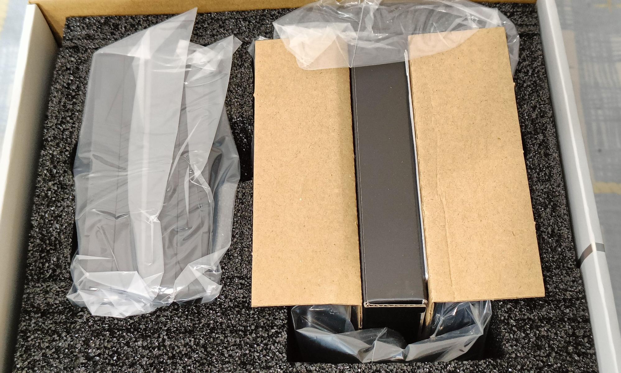 Вентиляторы и радиатор упакованы в полиэтилен и уложены в ванну из вспененного полиэтилена.