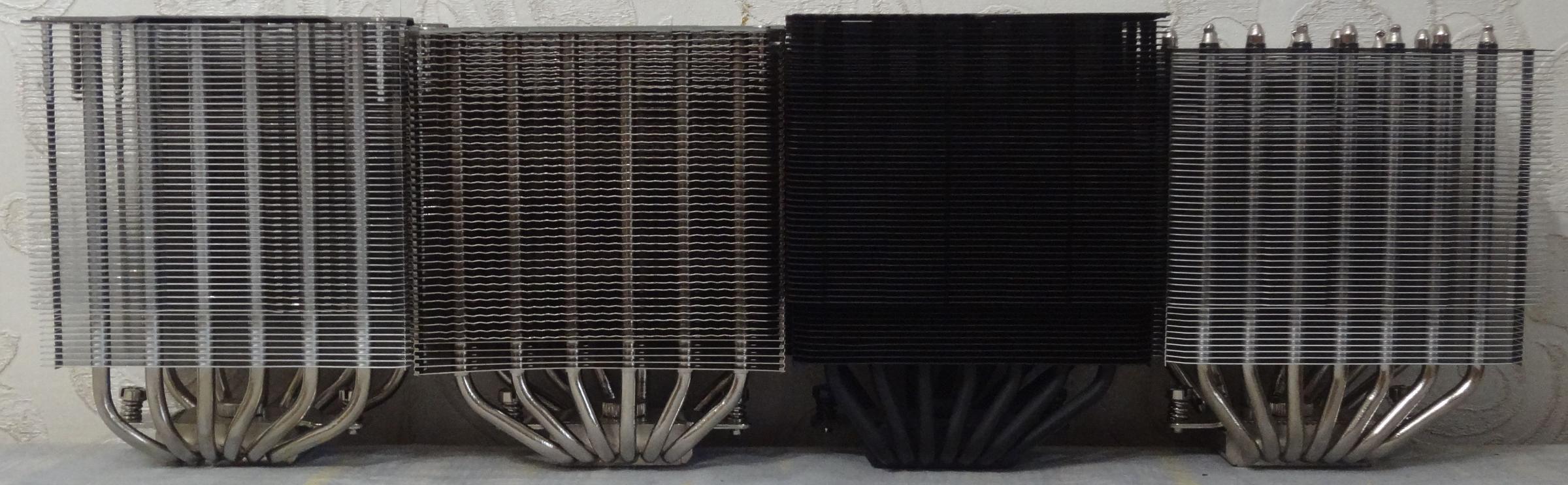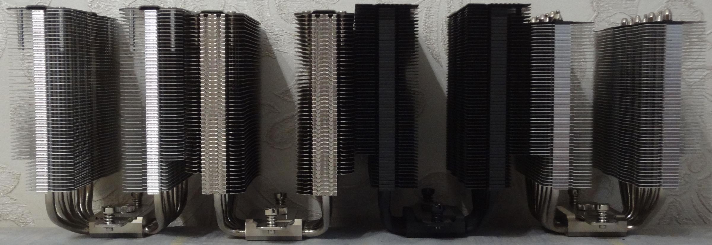 Для сравнения на фотографиях ниже приведено сравнение с предыдущими моделями. Слева направо : Peerless Assassin 120, Frost Tower 120, Phantom Spirit 120EVO, Phantom Spirit 120SE.