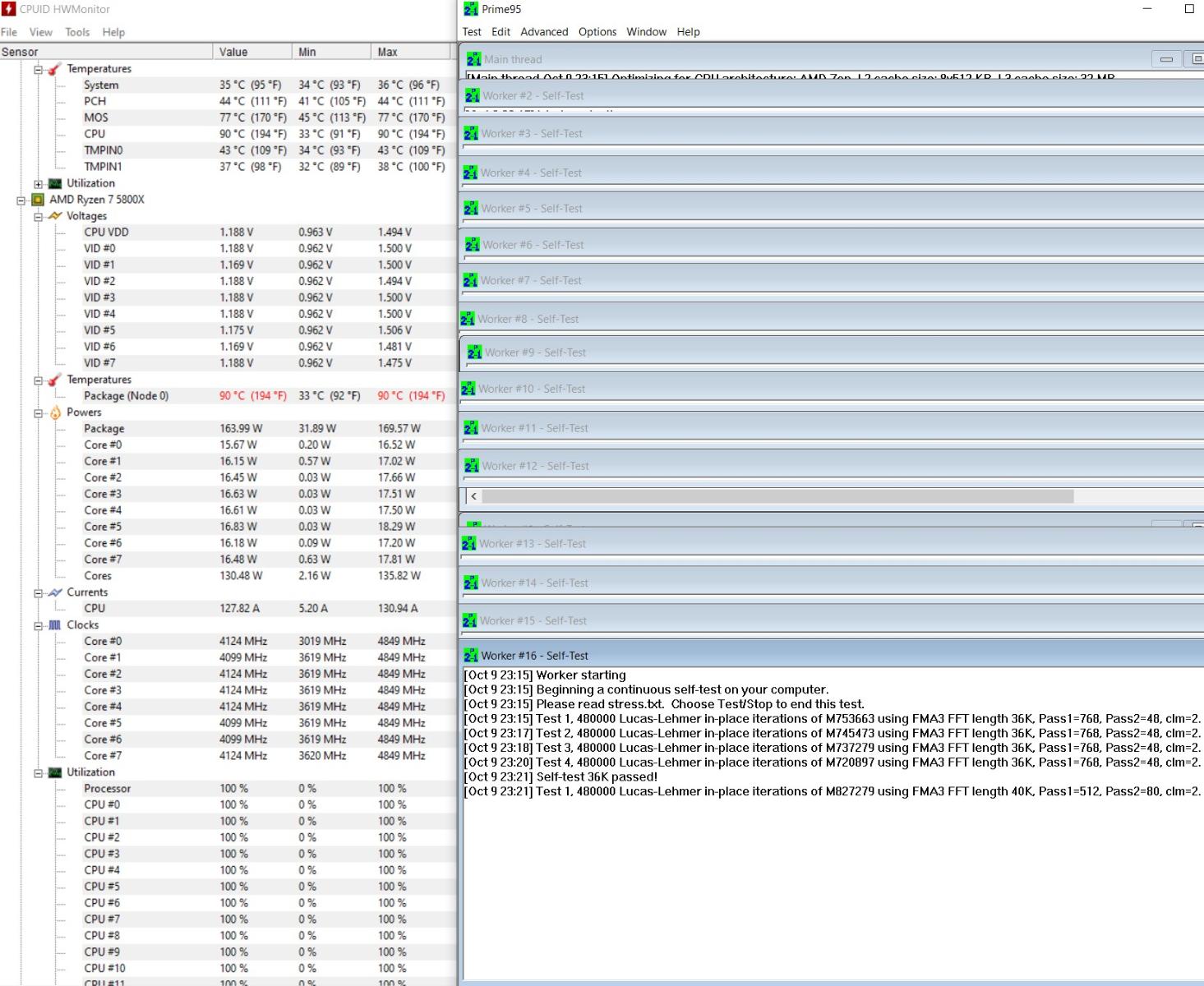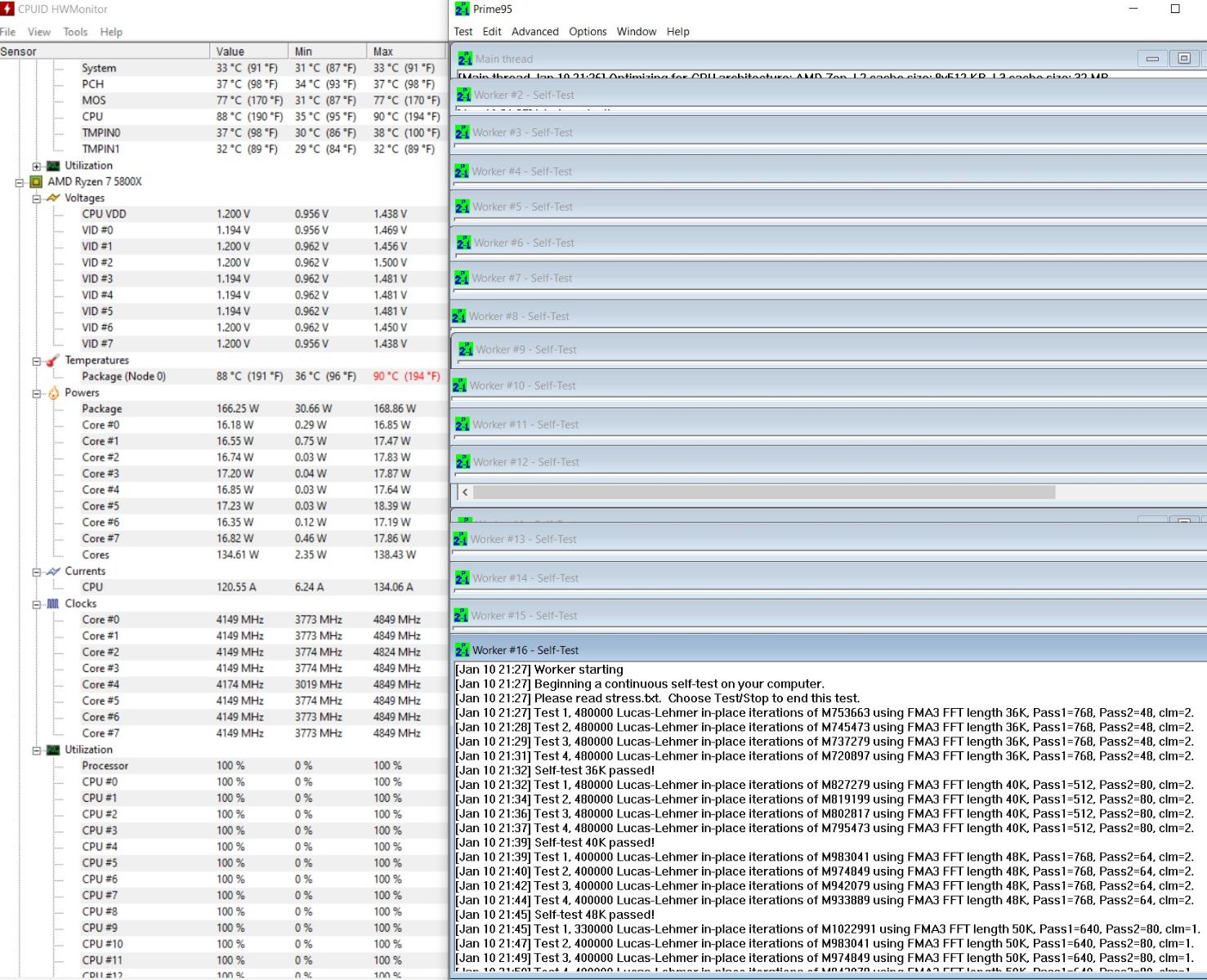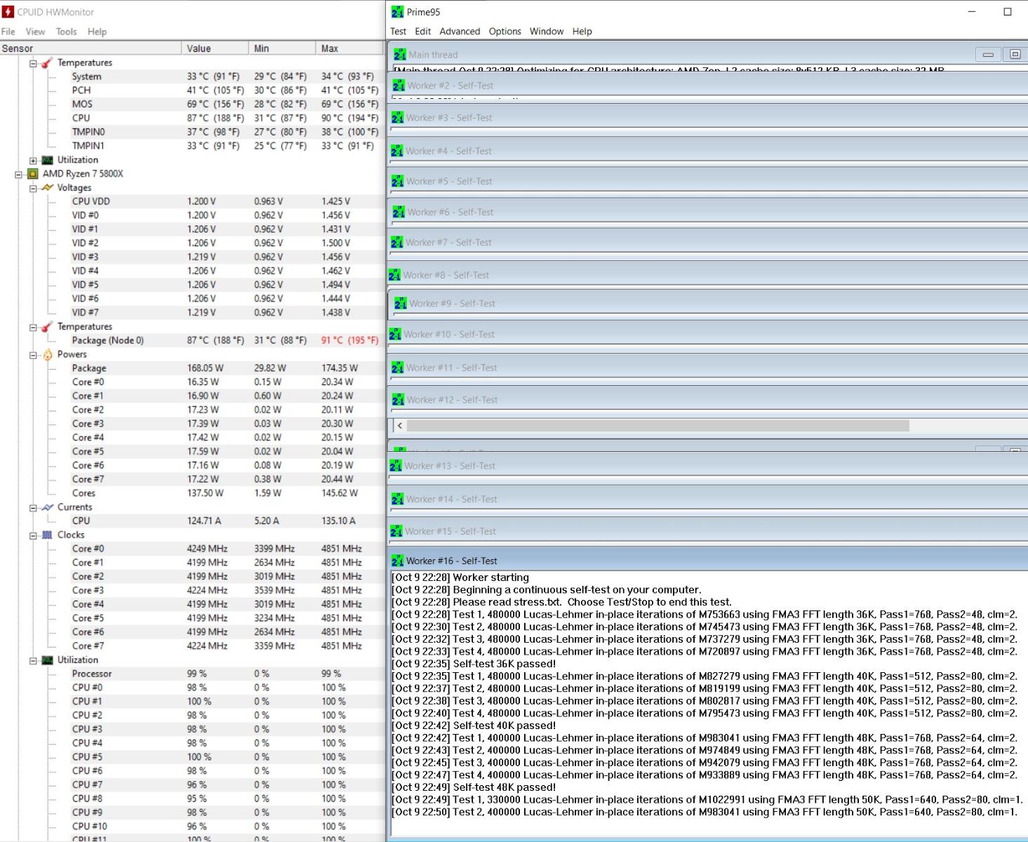 Prime 95(Small FFTs) - тестирование делалось в режиме с AVX на протяжении 20мин: при 1200 оборотах и минимально возможных.