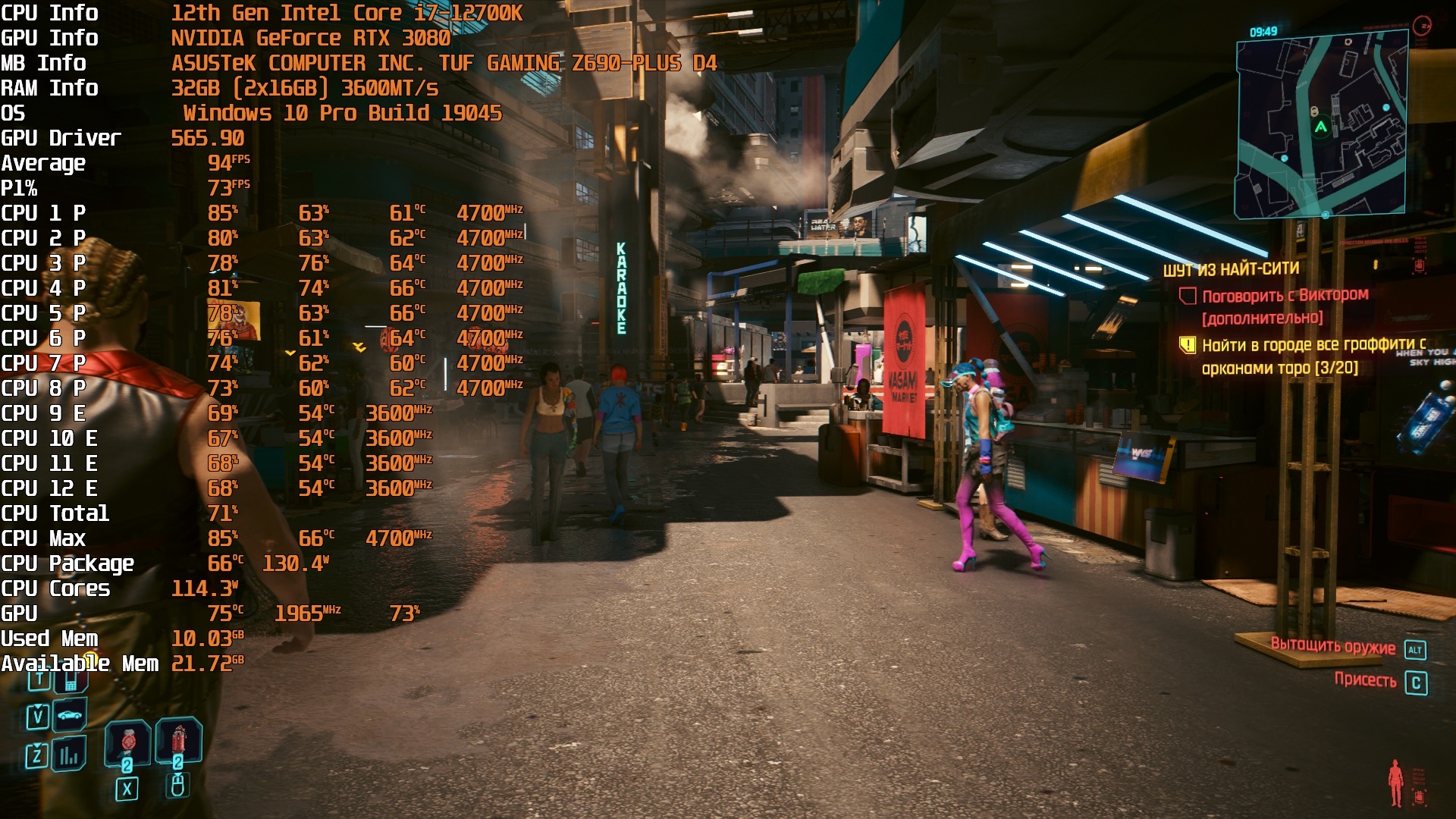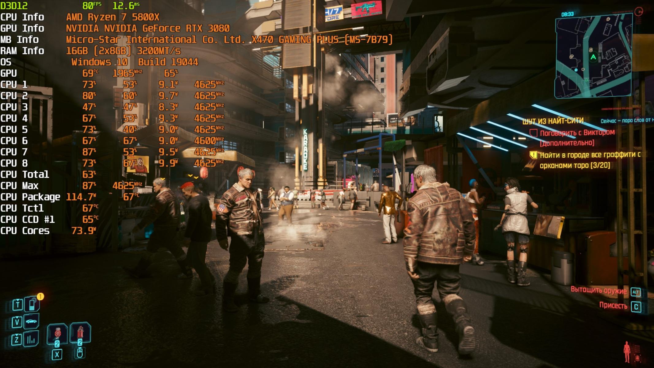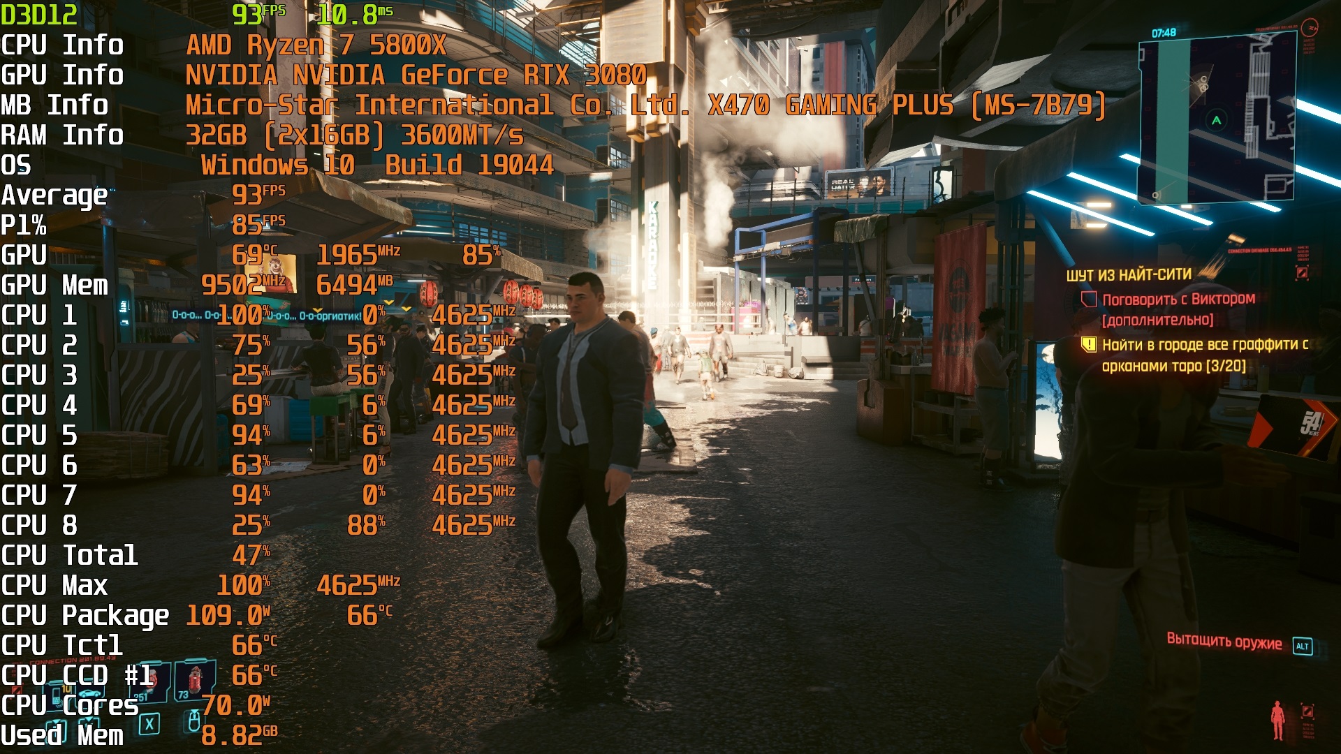 Cyberpunk 2077(GOG) v2.12 - Маленький Китай, 1080р/Высокие (на 900 об/мин). Плотность толпы - Высокая. Без трассировки лучей.