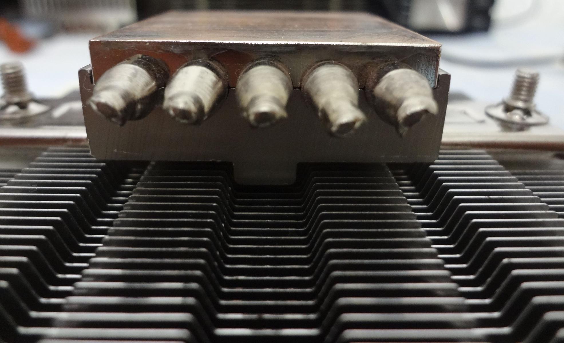 Ярко выраженный горб четко по центру - причина, не дававшая стабильности в Prime95 при нагрузке 120Вт. Из-за чего он собственно и был шлифован - что повысило его производительность.