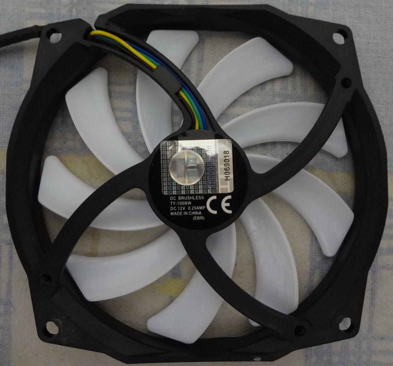 Вентилятор на гидроподшипнике, работает в диапазоне 900-1850об/мин. Имеет резиновые вставки на корпусе, для гашения вибрации. На оборотах свыше 1300-1400 становится отчетливо слышимым. Спустя год-полтора начинает отваливаться (меркнуть) подсветка. Меркнет неравномерно.