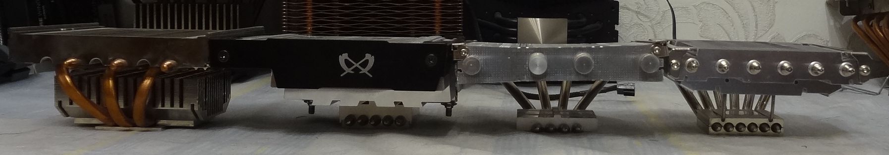 Scythe BigShuriken 3 : на текущий момент является самой производительной и продуманной моделью в классе, но в качестве "подарка" имеет горб в виде конуса в основании. Поэтому при приобретении будьте морально готовы к шлифовке основания кулера. Каждый цент из потраченных на него 60$ отрабатывает на все 146%.