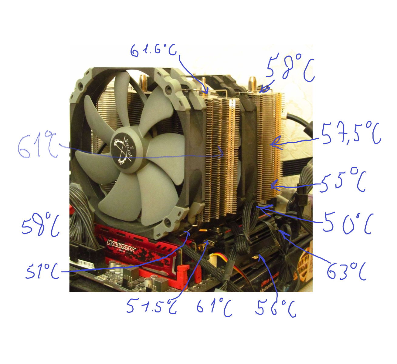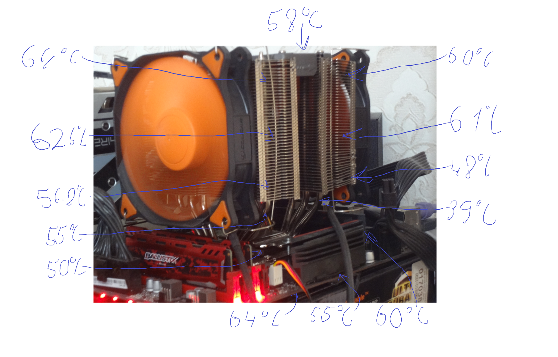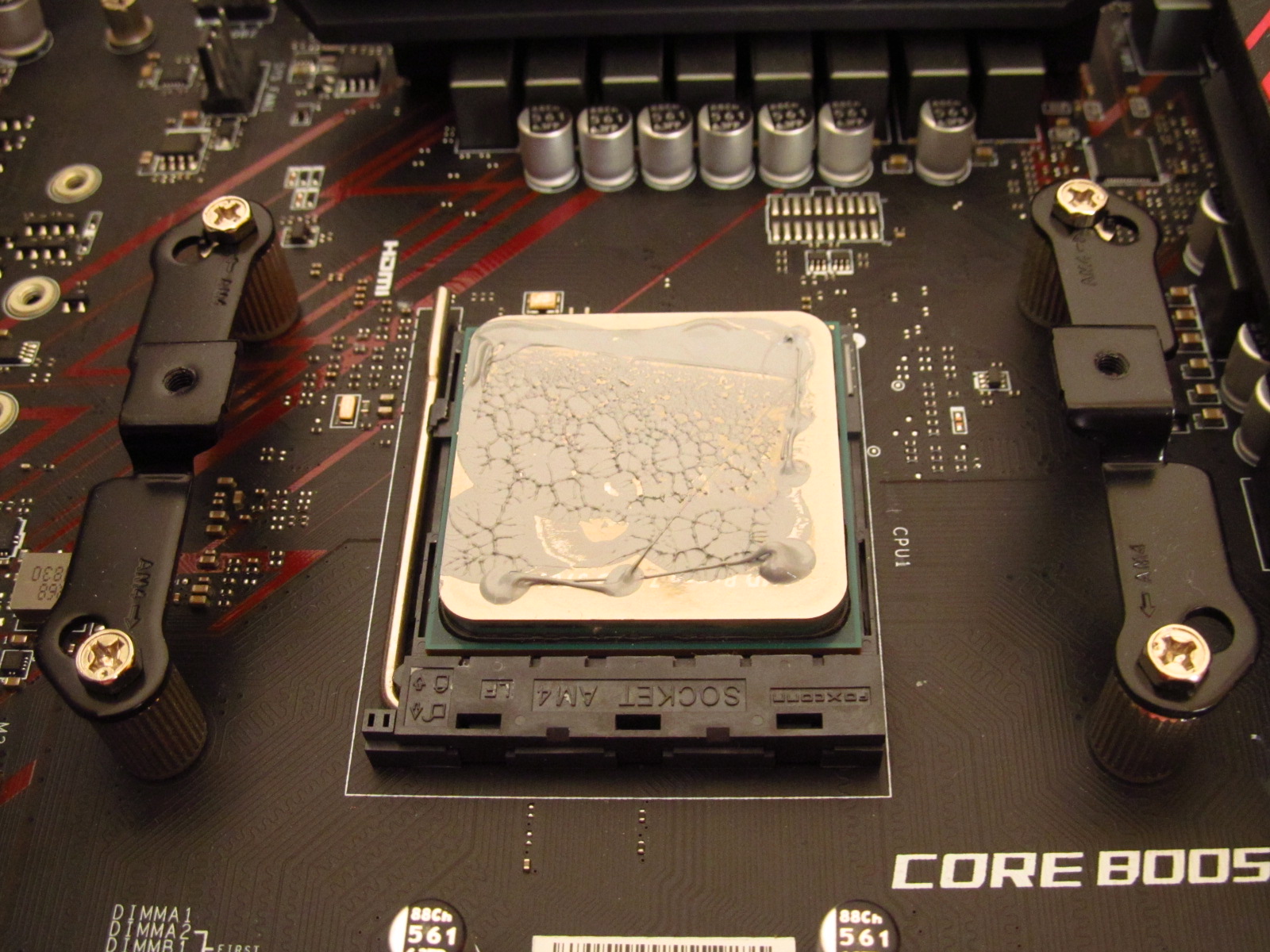 *теплотрубки кулера и основание покрыты термостойкой краской, с содержанием керамических частиц, что должно увеличить КПД радиатора кулера