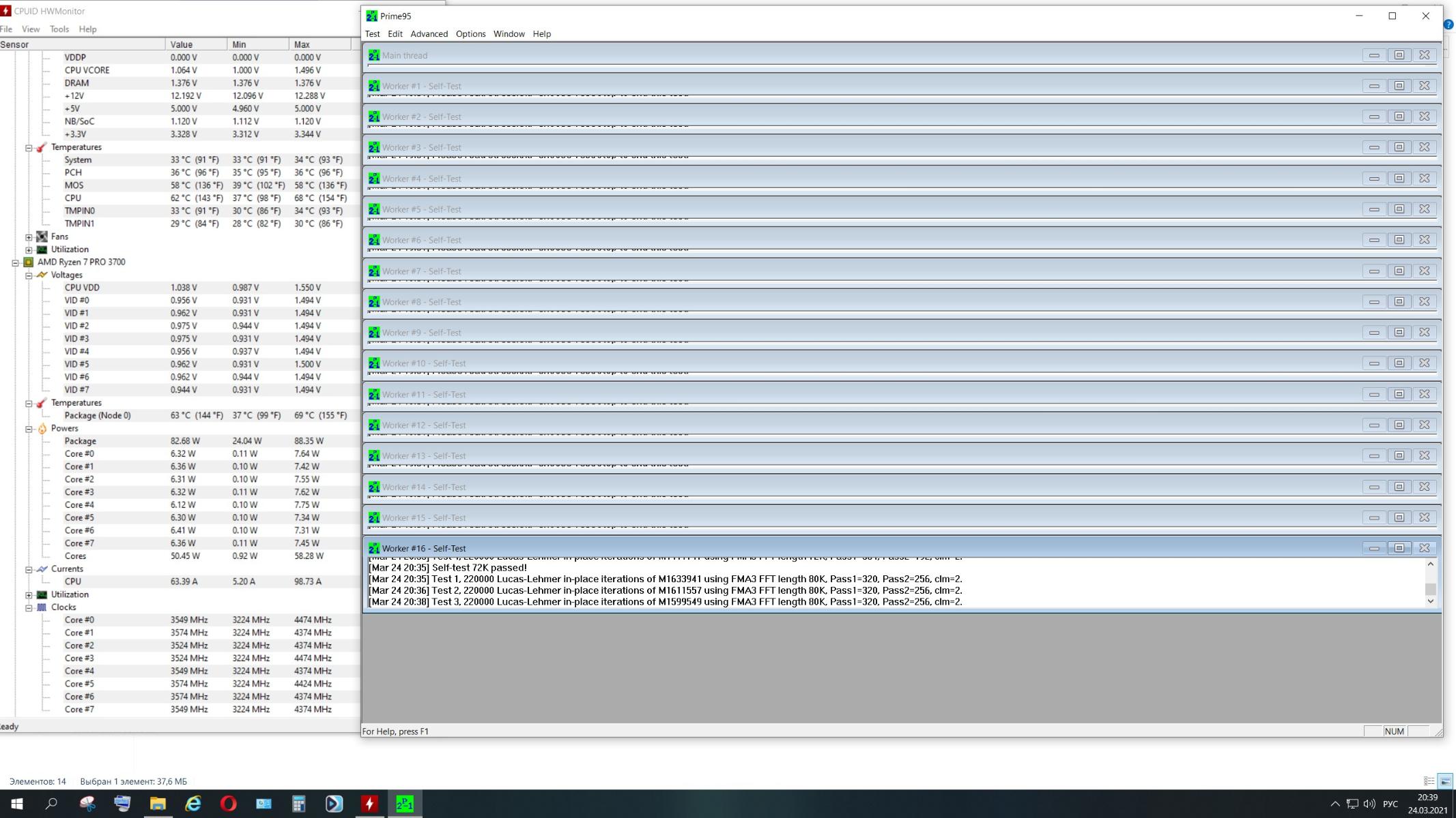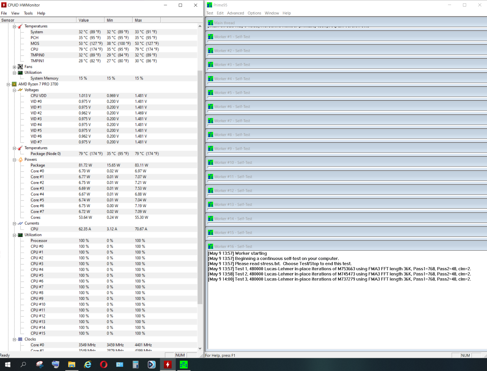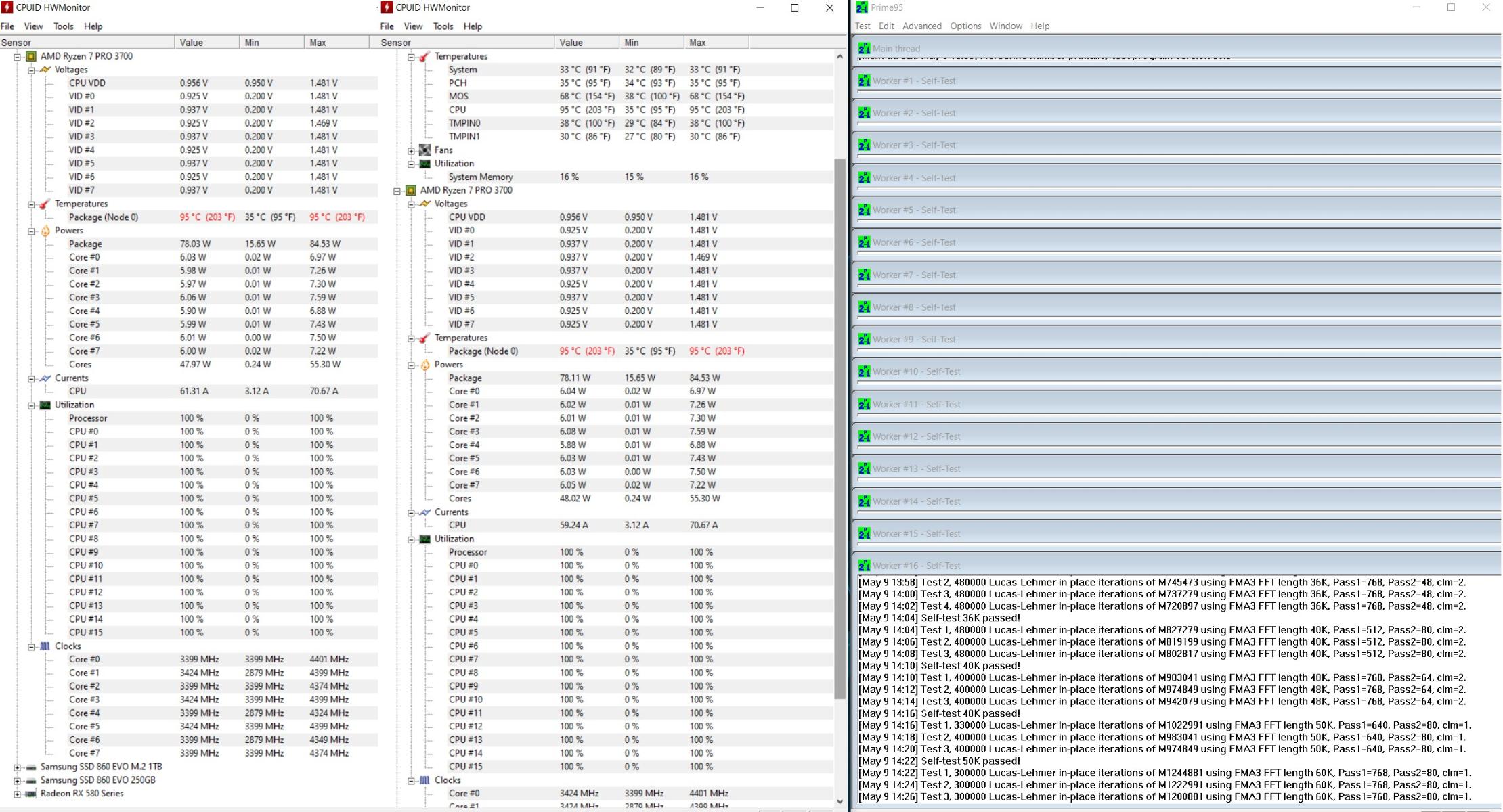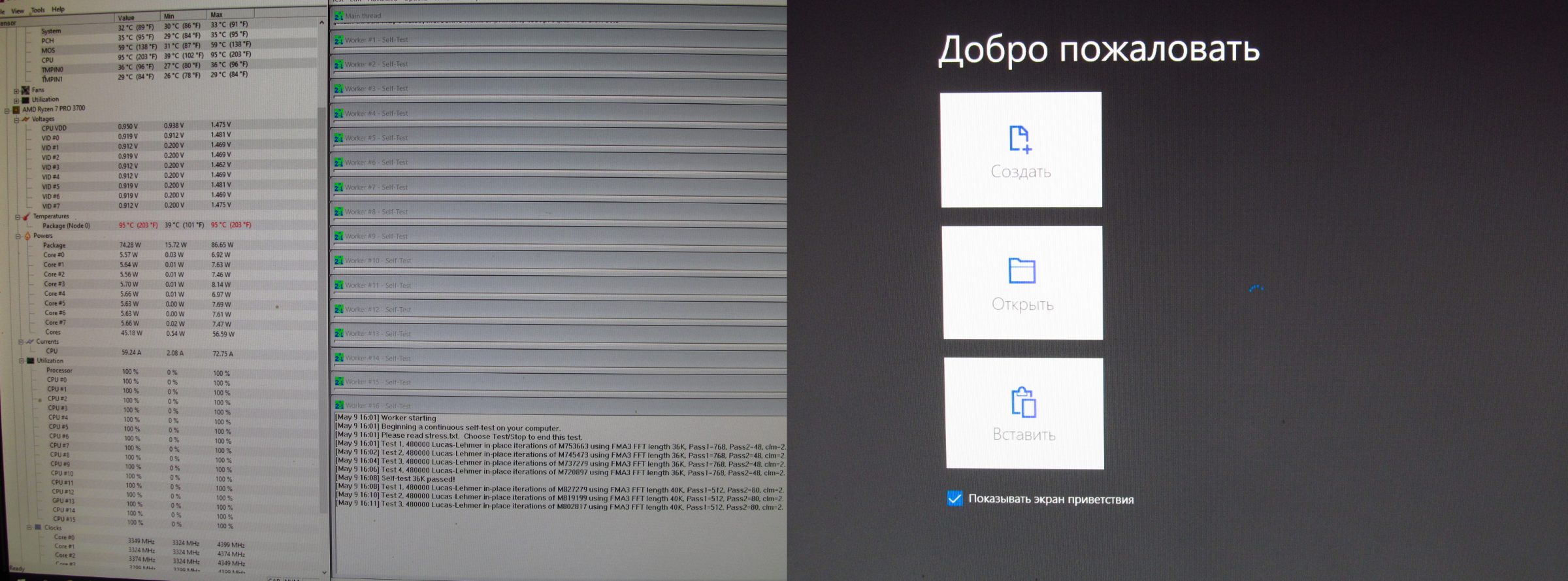 Prime 95, 900 Об/мин,R7-3700Pro 3.6@4.4 PBO