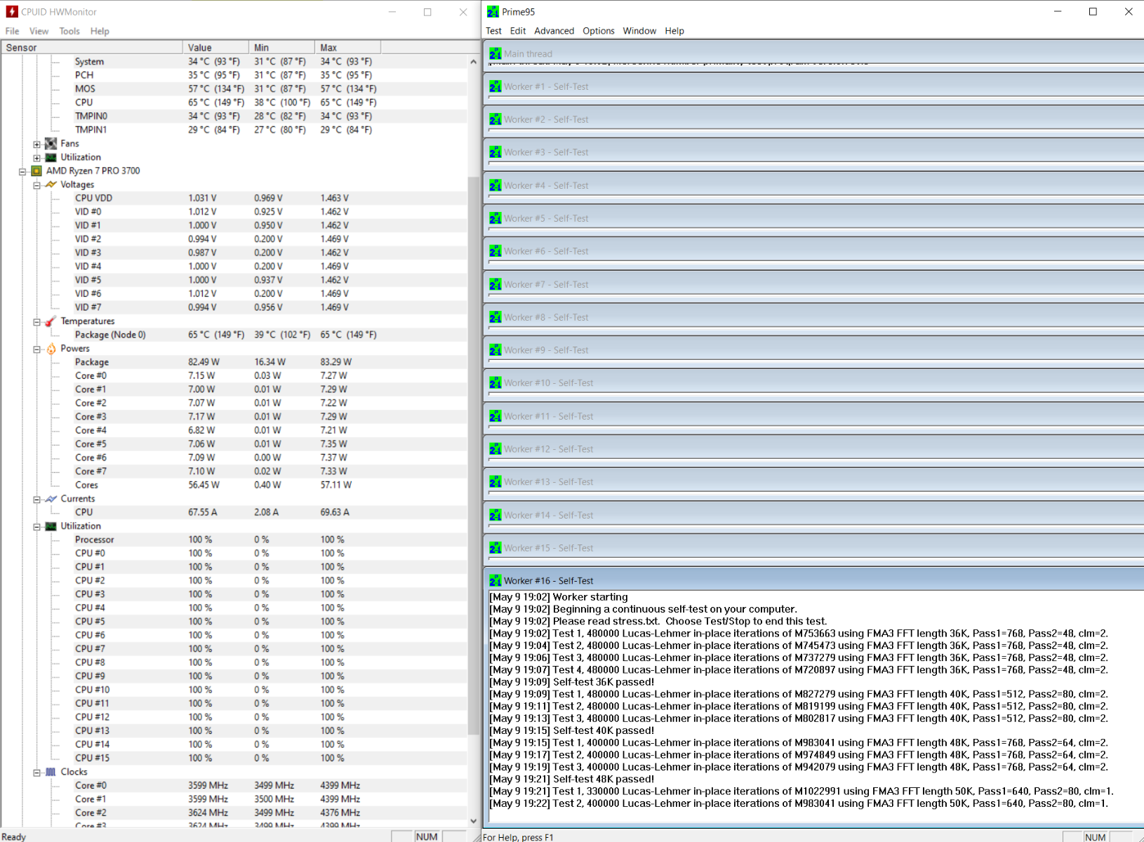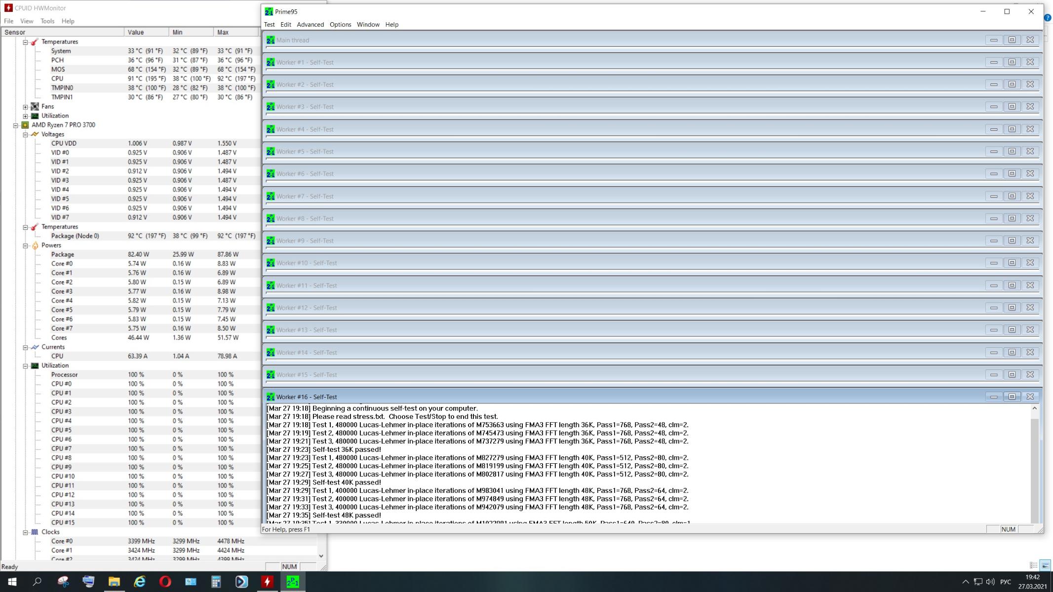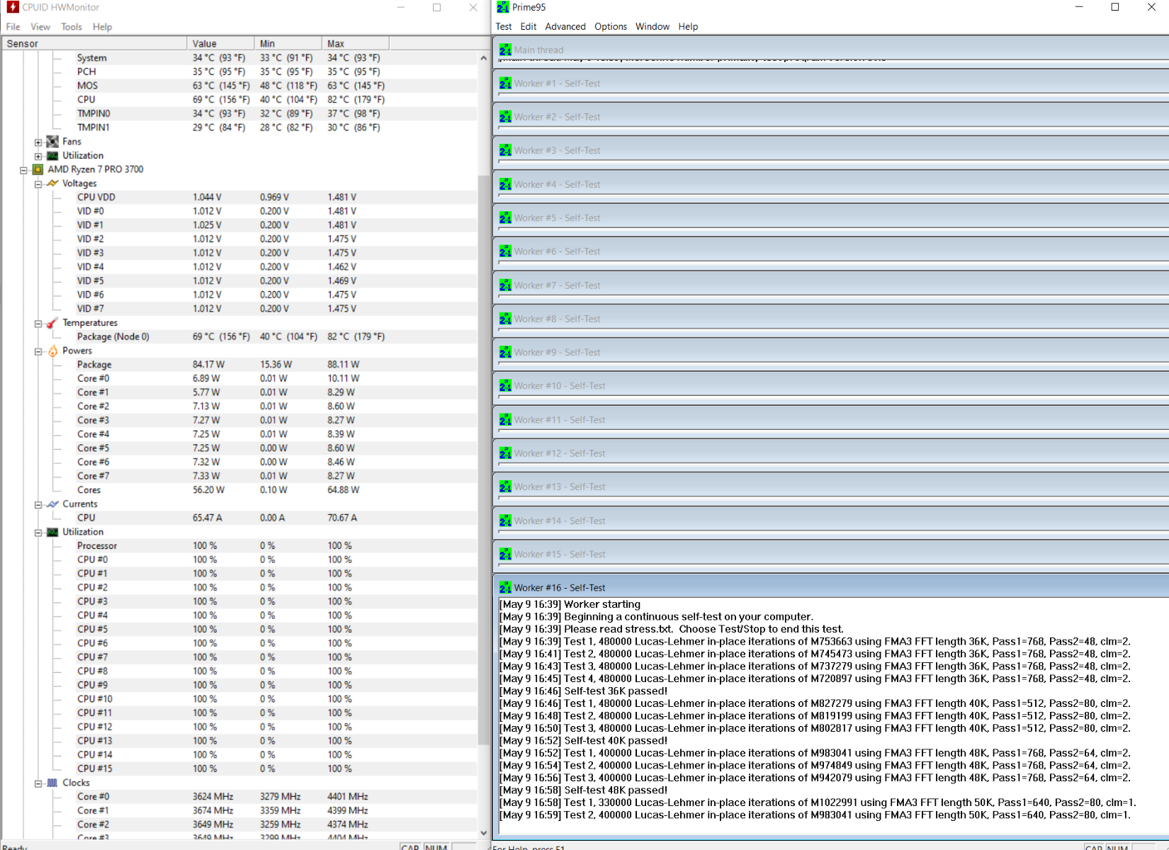 Prime 95, 900 Об/мин,R7-3700Pro 3.6@4.4 PBO