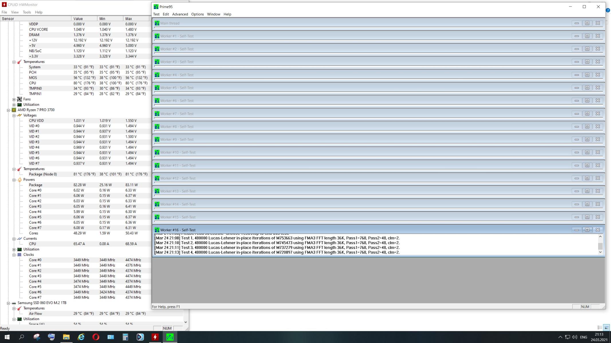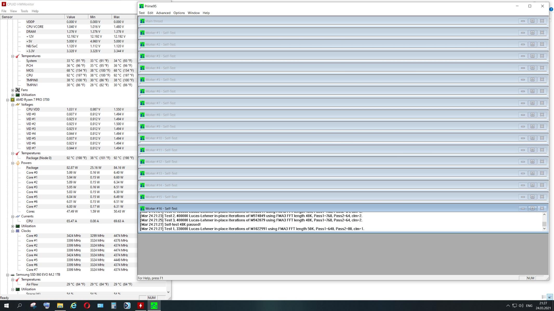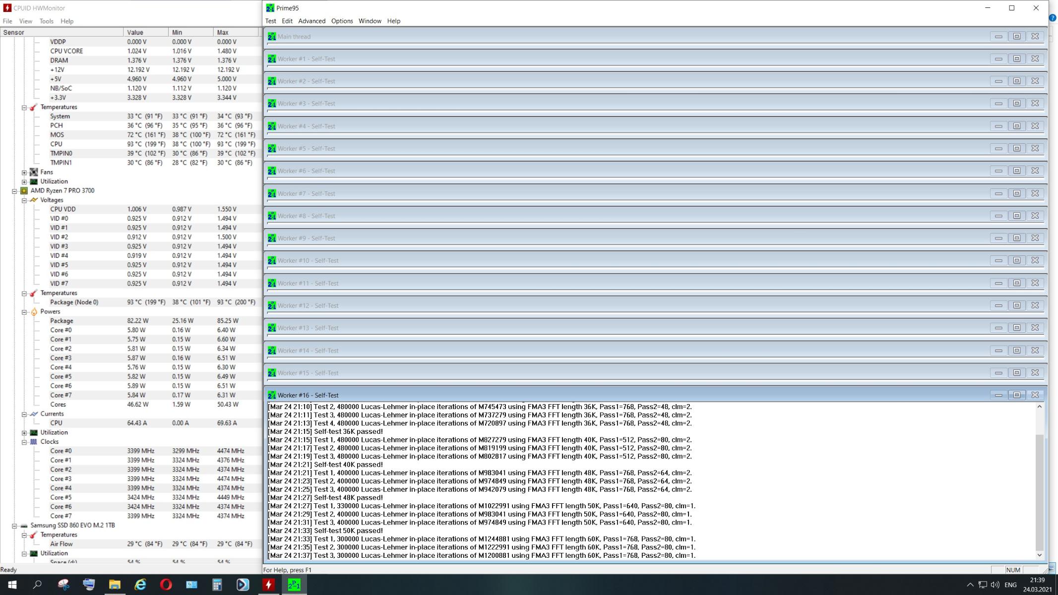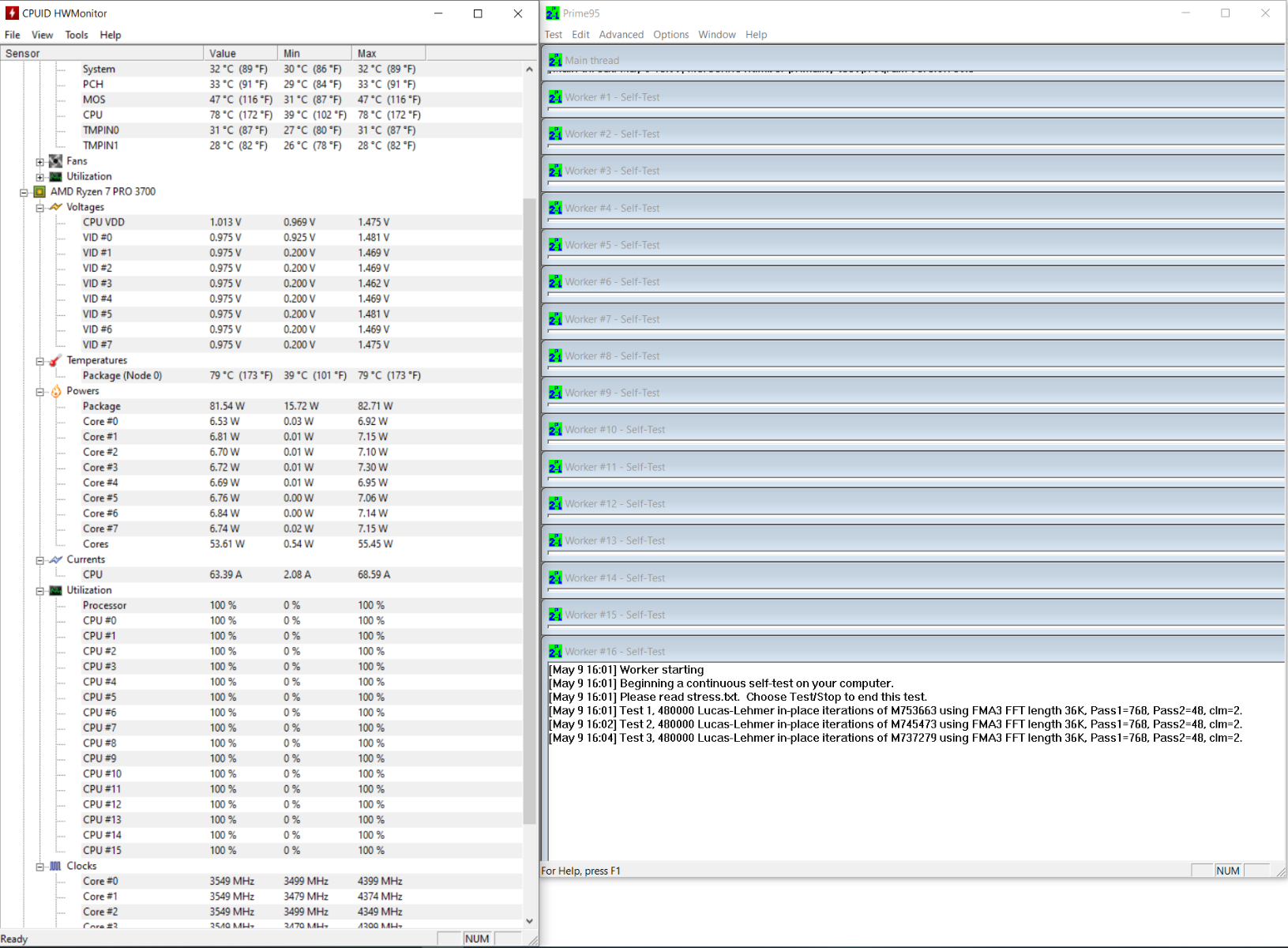 Prime 95, 900 Об/мин,R7-3700Pro 3.6@4.4 PBO