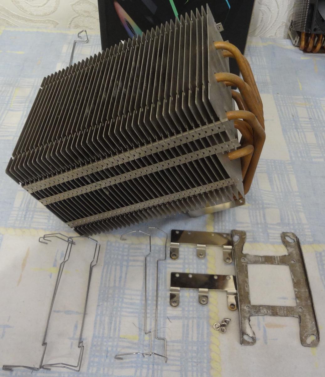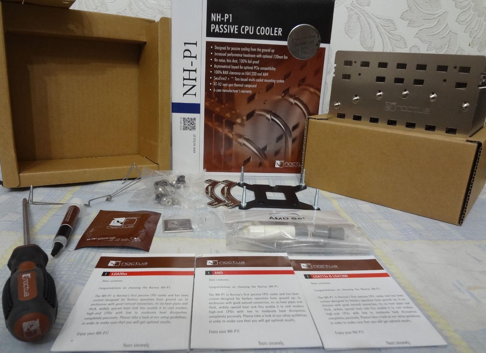 Коробка с аксессуарами - torx-отвертка, крепления АМД/Интел, скобы для 120/140мм вентилятора, инструкции по установке.