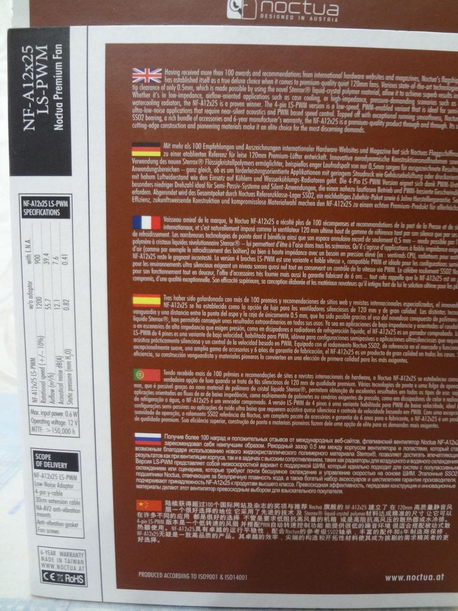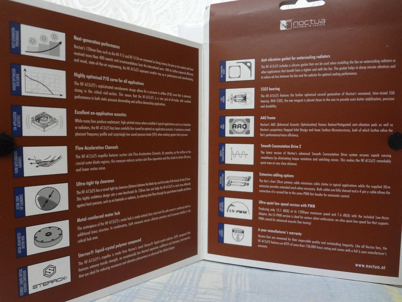 Кулер упакован в коробку из качественного гофрокартона с цветной полиграфией, выполненной в традициях Noctua.