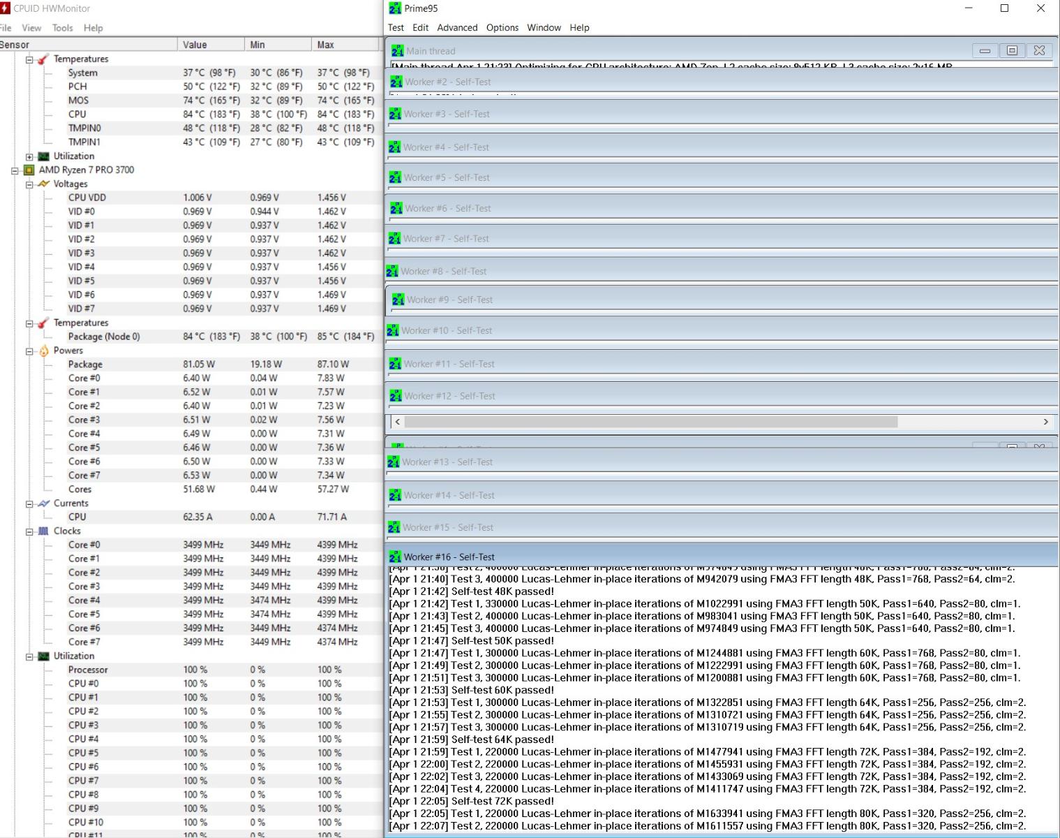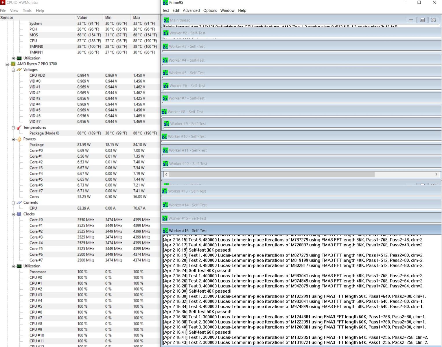 Prime95 30.5 (Small FFT,AVX+AVX2 off, 88Вт) - 1ч прогон. Обдув радиатора отсутствовал.
