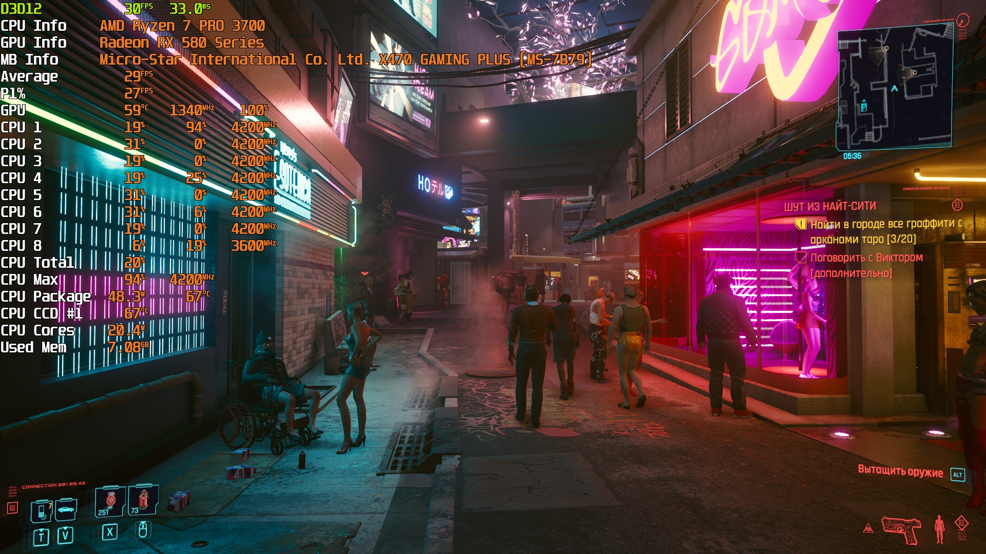 Cyberpunk 2077 - 1080р/Средние, локация - Маленький Китай (выбирались локации с большим скоплением NPC)