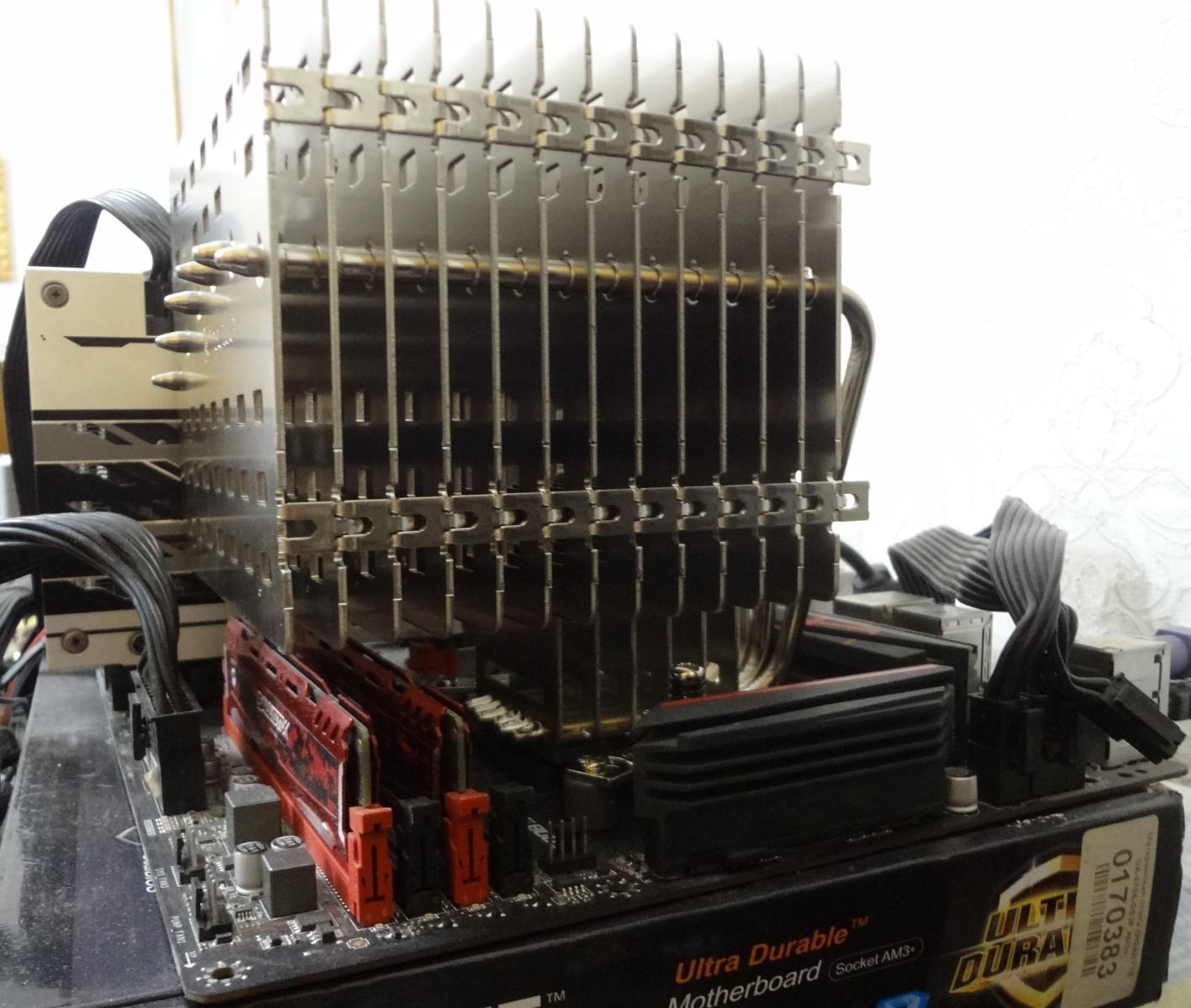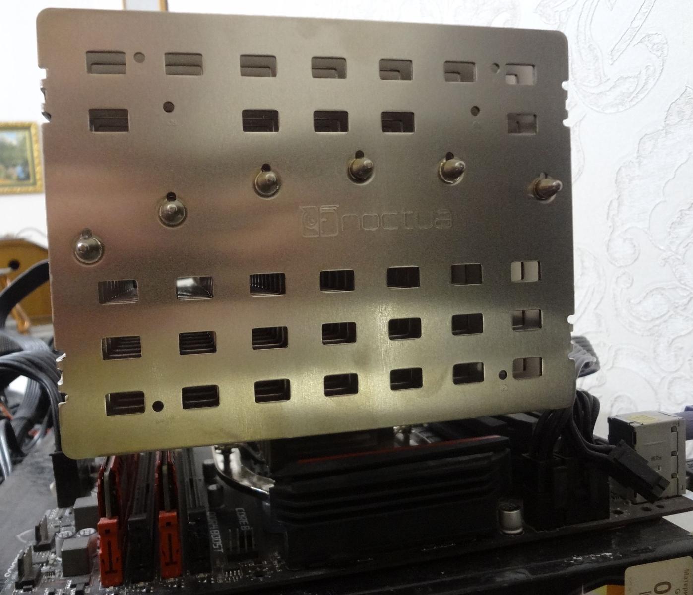 К сожалению подобный способ установки подойдет лишь для открытого стенда и лучше, если система будет собрана на МП формата Е-АТХ.