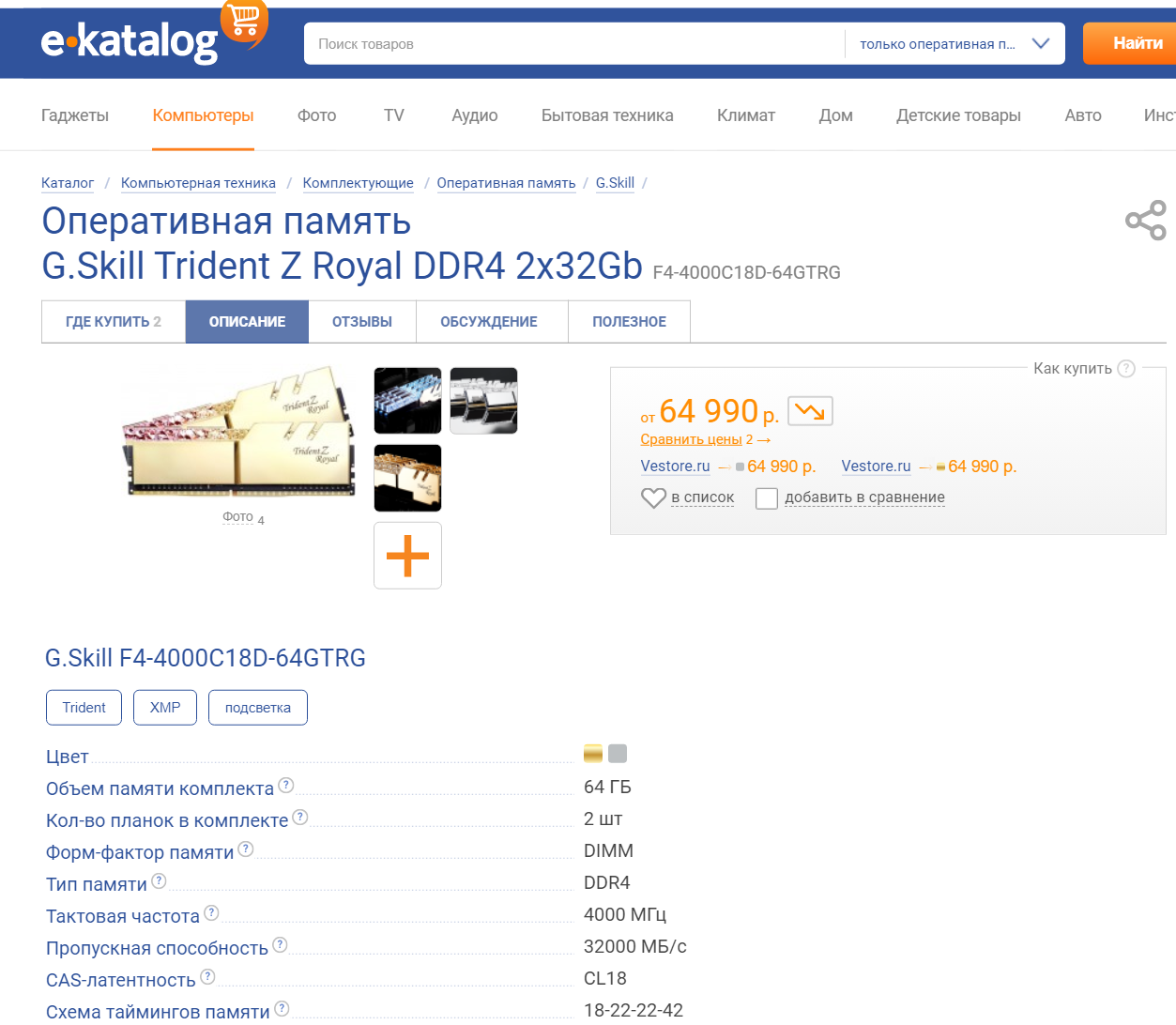 ОЗУ мы возьмем 64Гб двумя плашками и с самыми низкими таймингами. Как это зачем нам 64Гб ?! Чтобы обходиться без файла подкачки и запускать все самые-самые новые игры (в 720р).