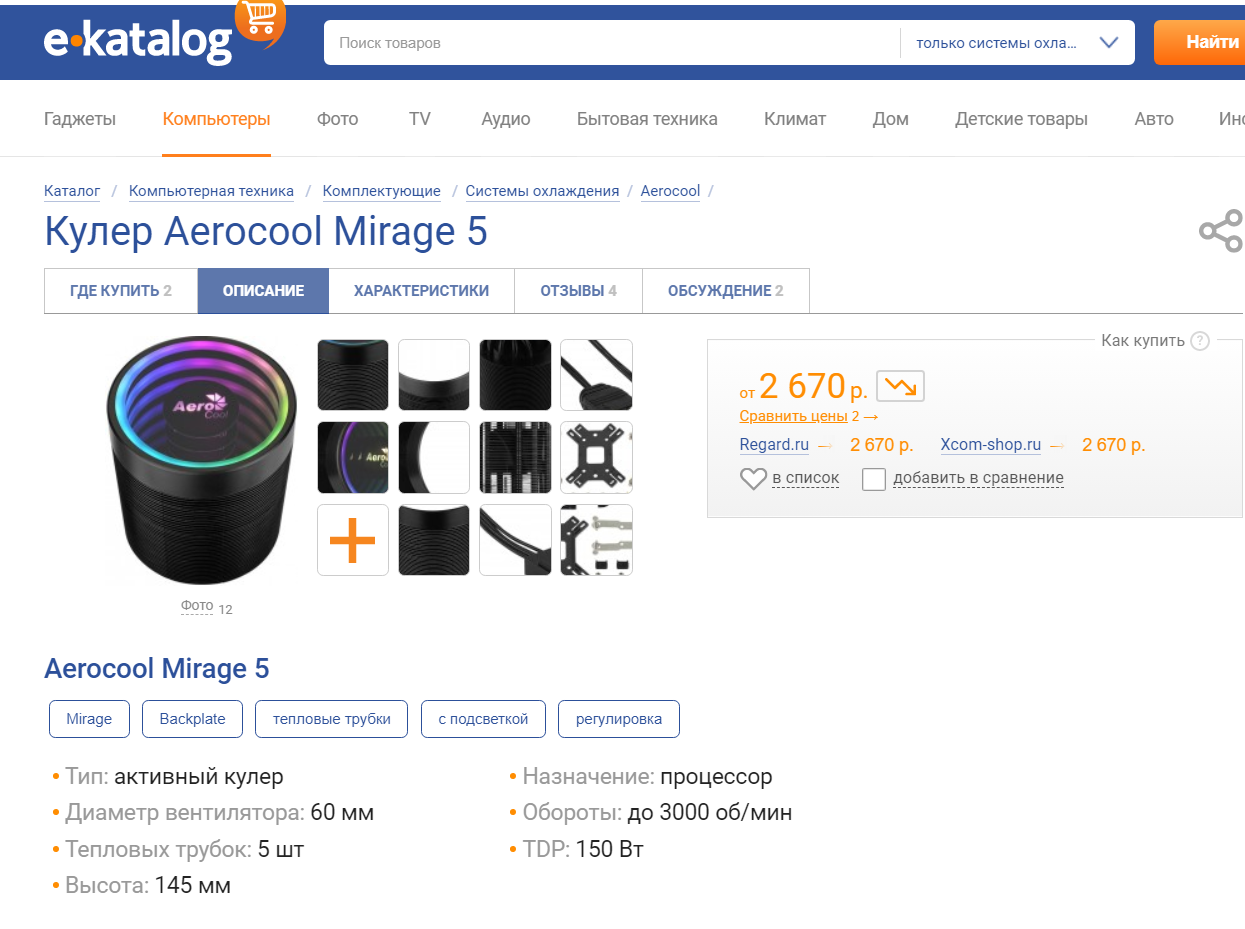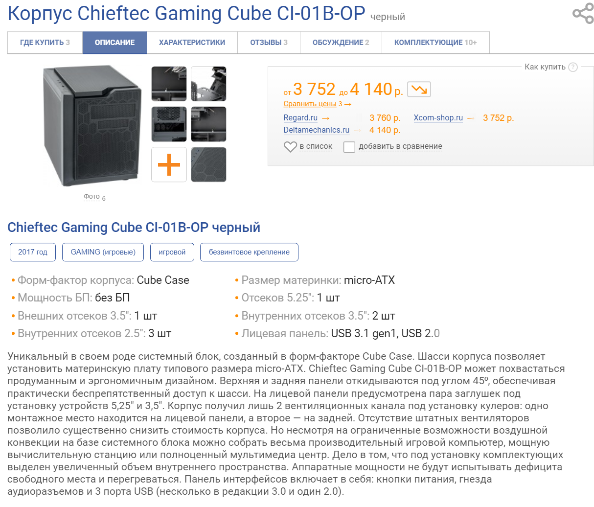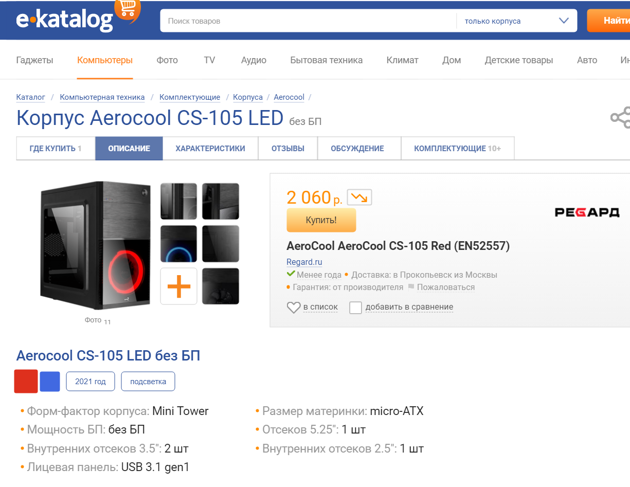 Так как у нас нет лишних денег, то мы возьмем корпус от Аэрокул. Самый бюджетный.